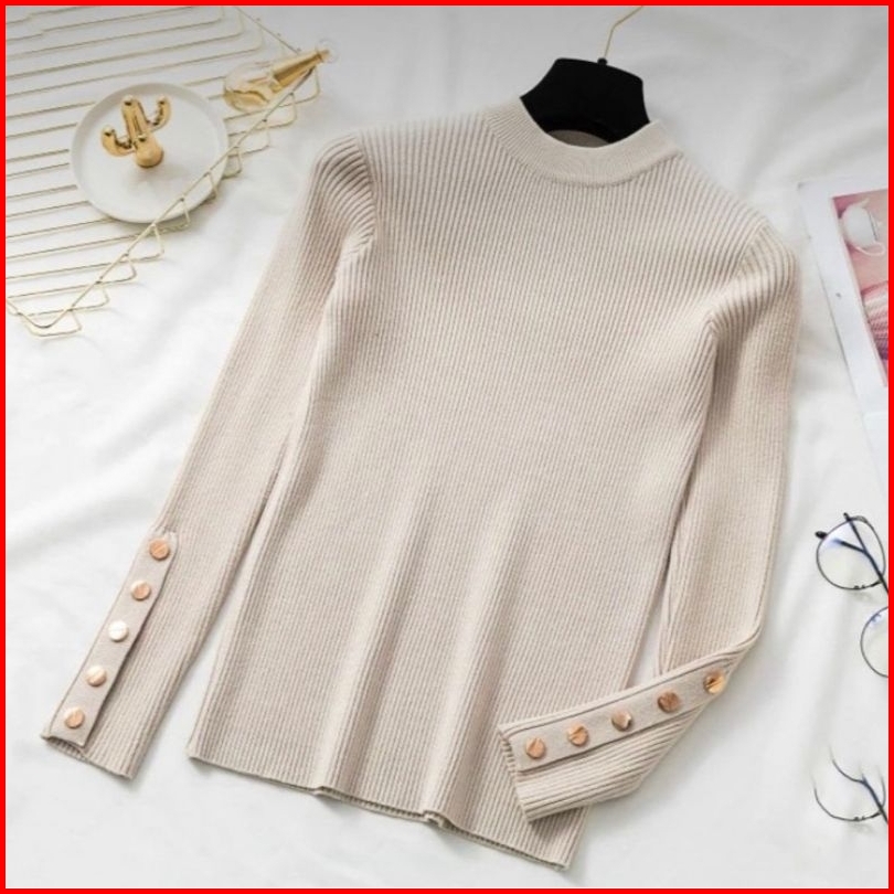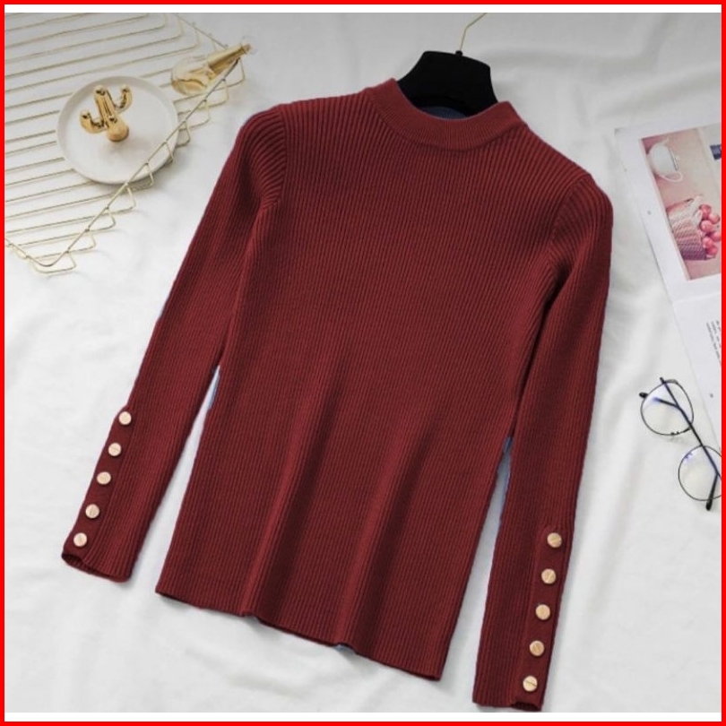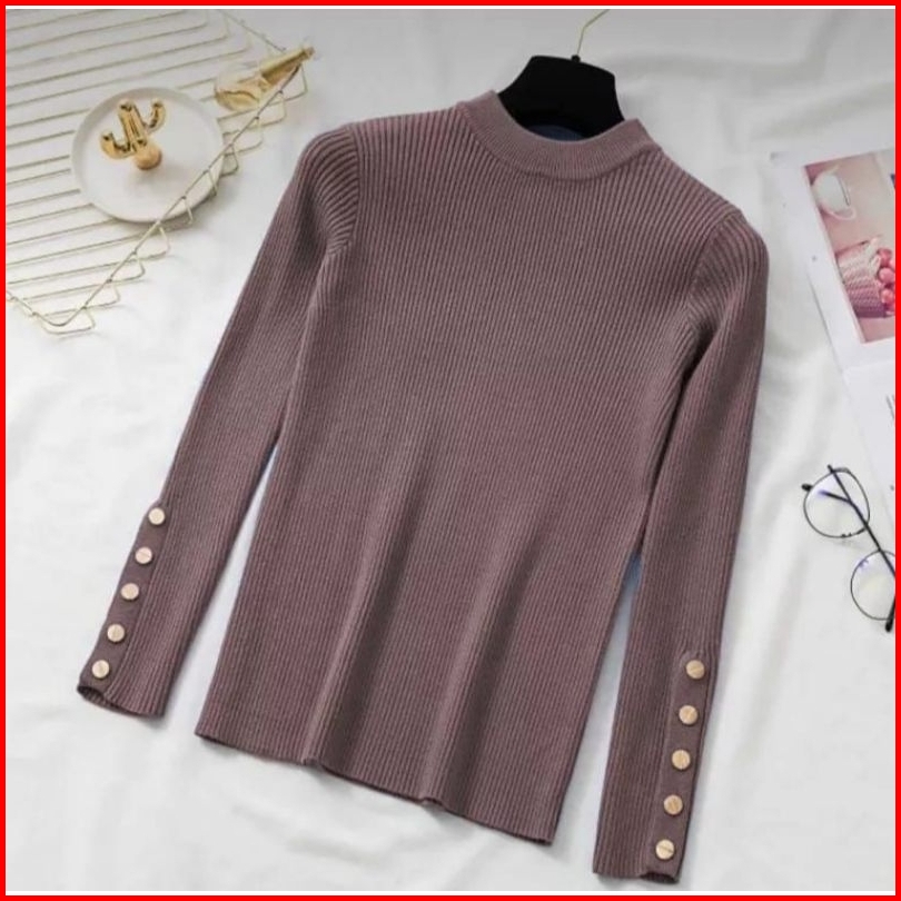 Regin Fashion Inara Turtleneck Sweater Blouse Rajut Atasan Wanita Kekinian Baju Rajut Atasan Wanita Inara Manset Kancing