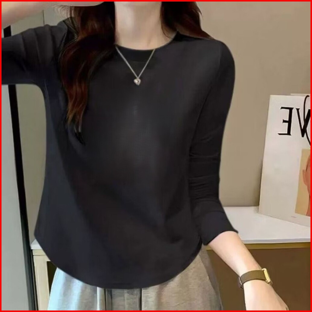 Natasya Kaos Wanita Polos Lengan Panjang Baju Oblong Wanita Lengan Panjang Bahan Spandek Distro Printing Premium Lengan