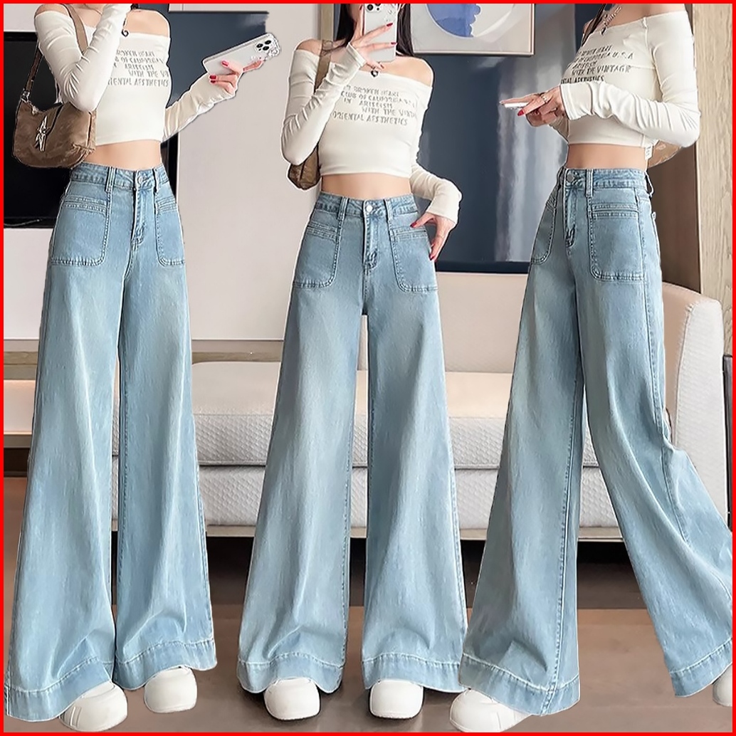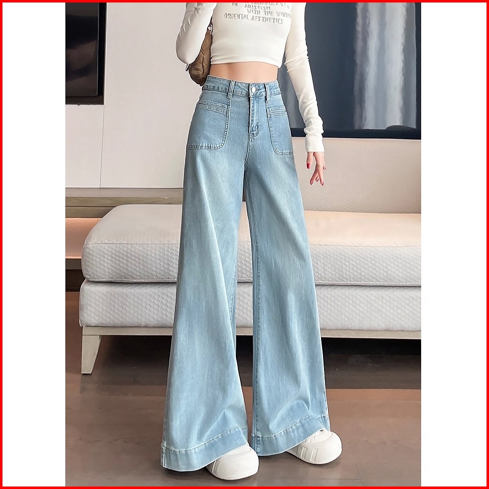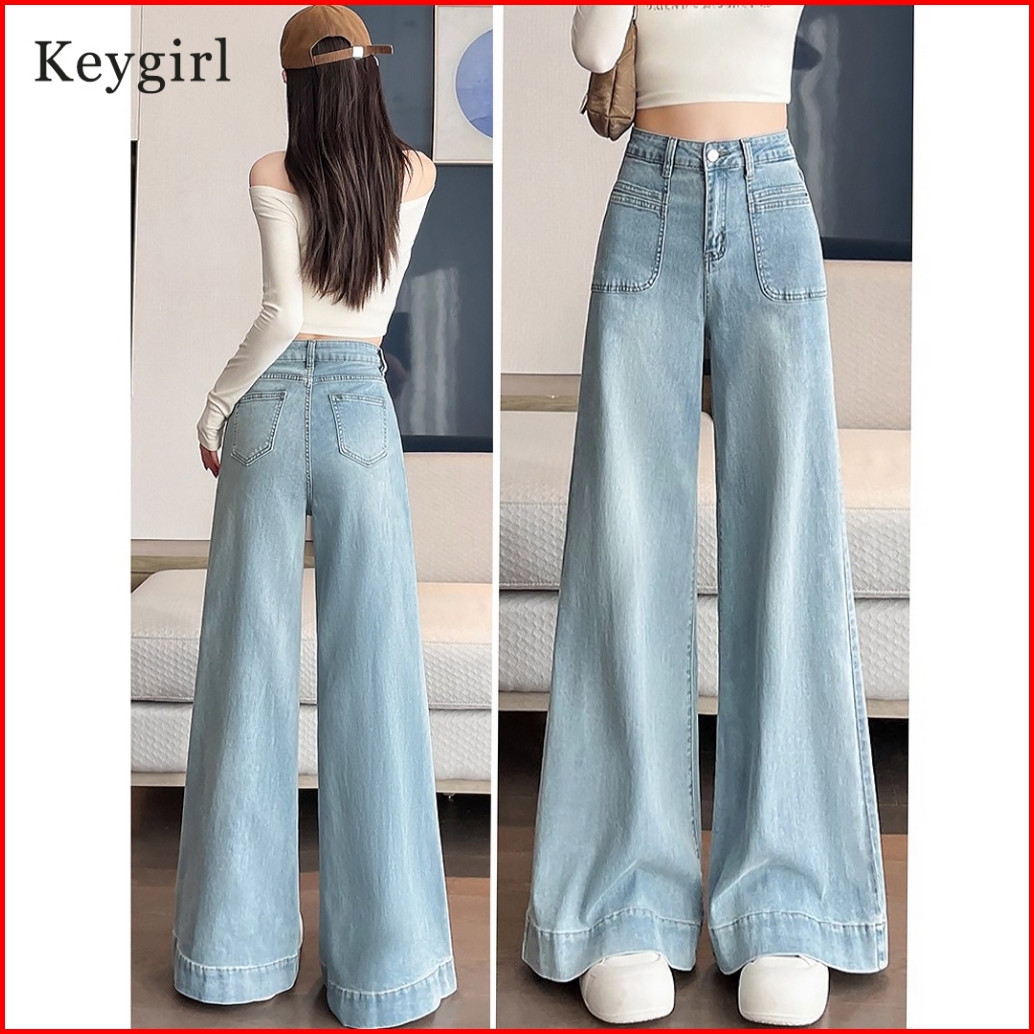 Keygirl Biru Muda Baggy Celana Jeans Panjang Wanita Highwaist Straight Wide Leg Causual Hiphop Streestyle Premium Pants