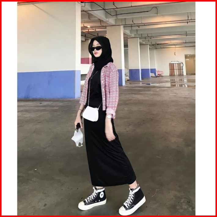 Inner Dress Rayon Twill Tali Pinggang Inner Gamis Rayon Tanpa Lengan Manset Dress Span Baju Dalaman