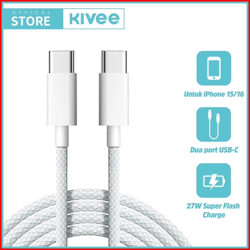 Kivee Fast Charging Cable 27w Type-c To Type-c At54 Durable Braided Cord For Iphone Ipad Mac