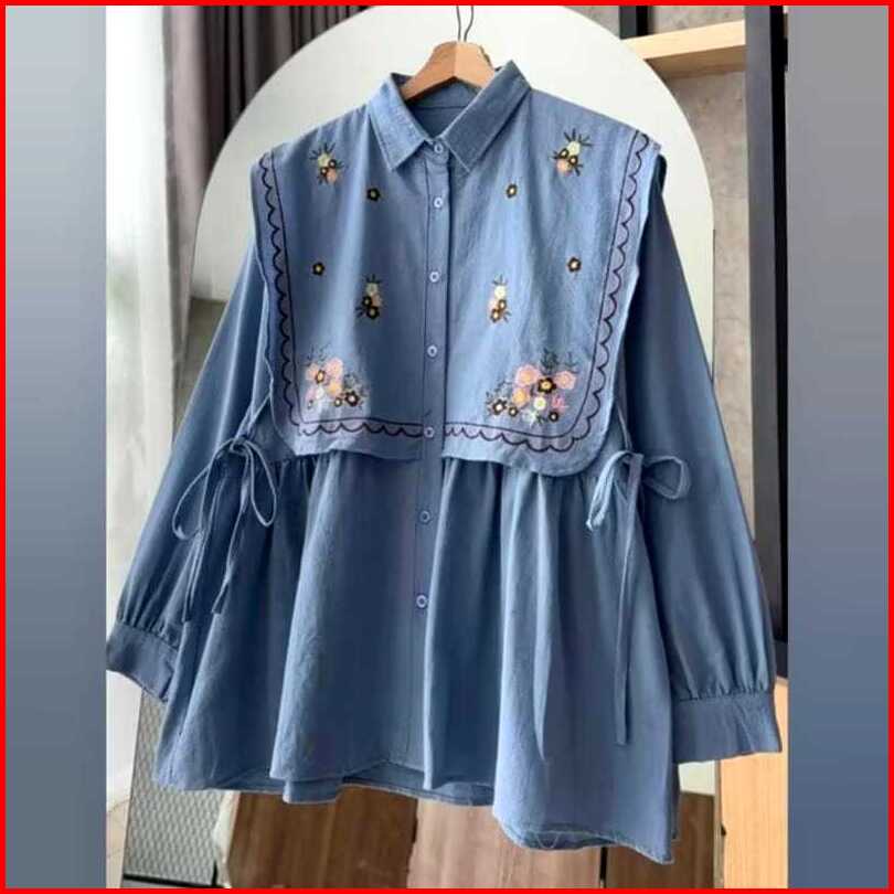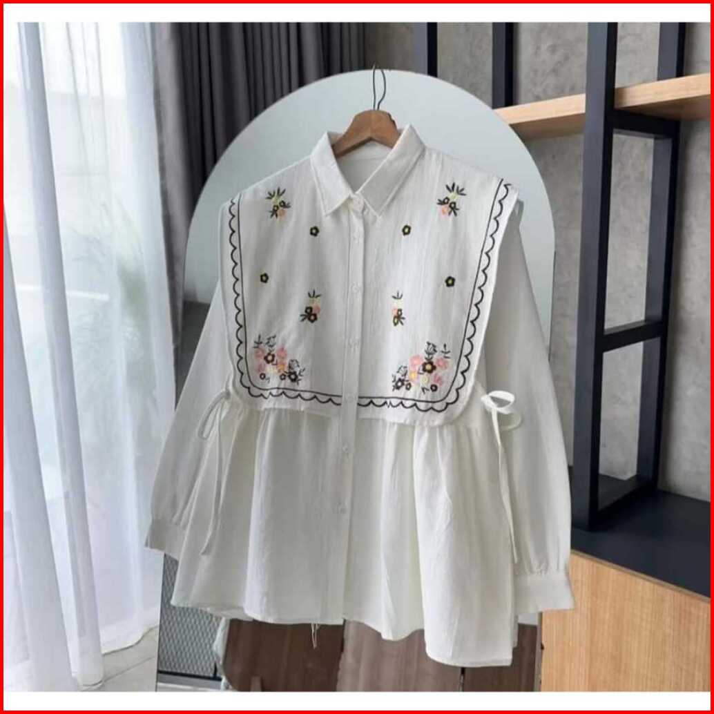 Kemeja Wanita Bordir Bunga Rompi Korean Style Baju Atasan Wanita Terbaru