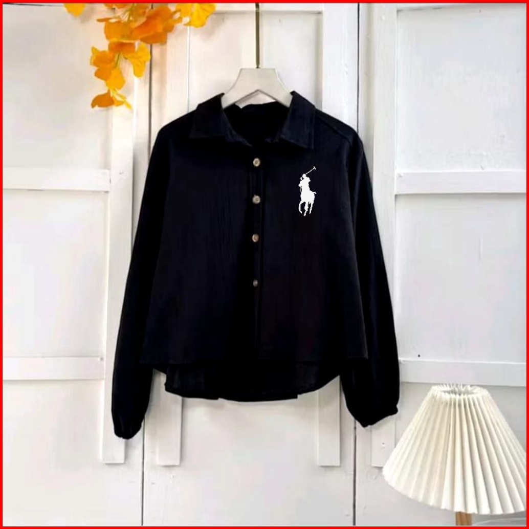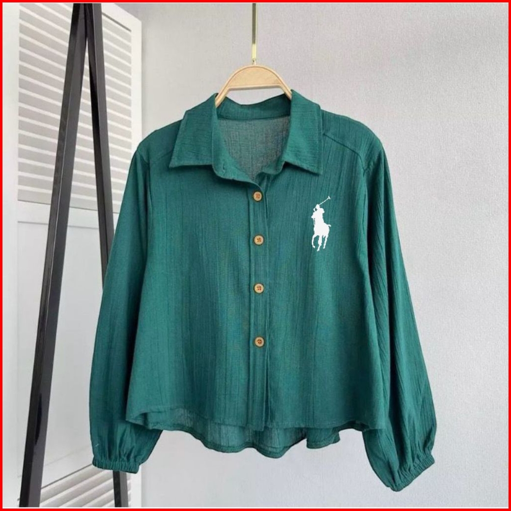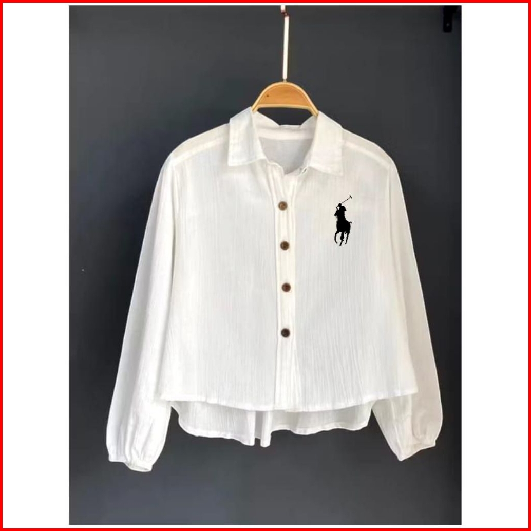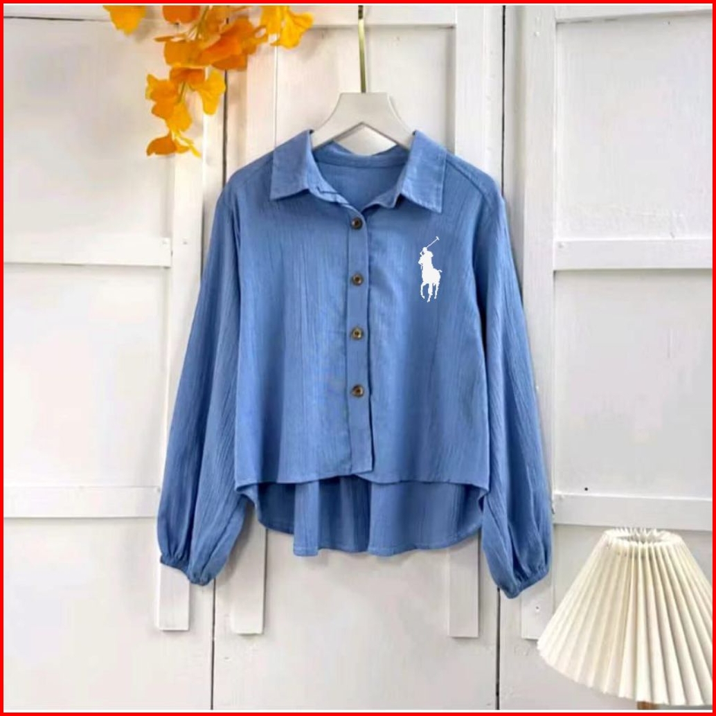 Kemeja Wanita Korean Style Crop Top Lengan Panjang Blouse Atasan Lengan Balon