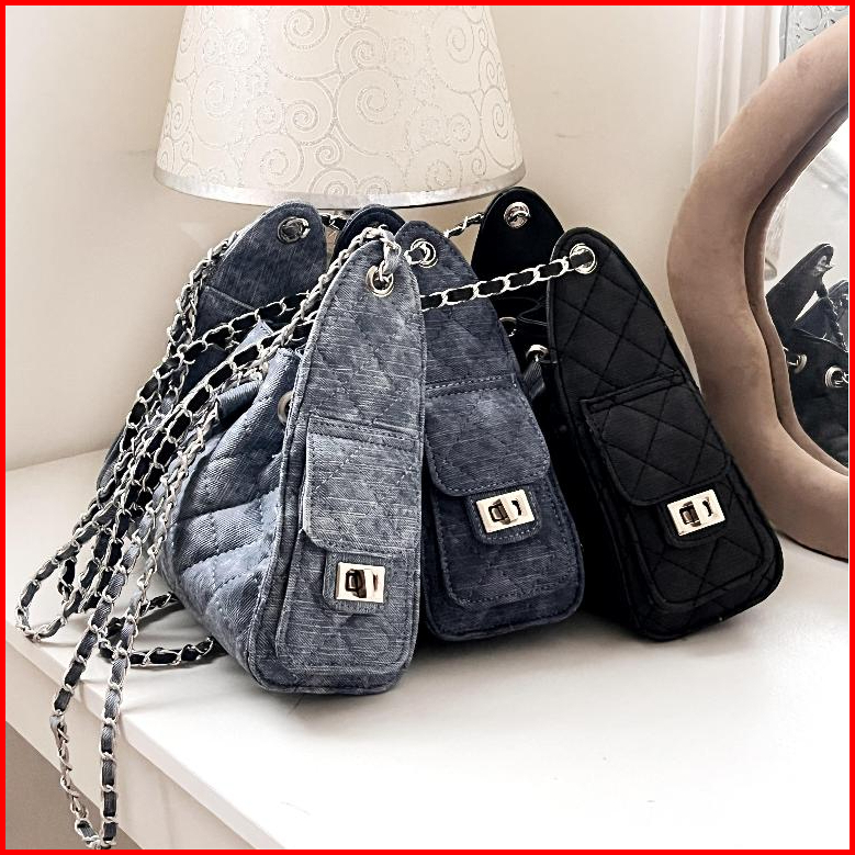 Tasgemes - Syifaju Tas Wanita Bahu Shoulderbag Rantai Syifa Hadju Serut Aesthetic Denim