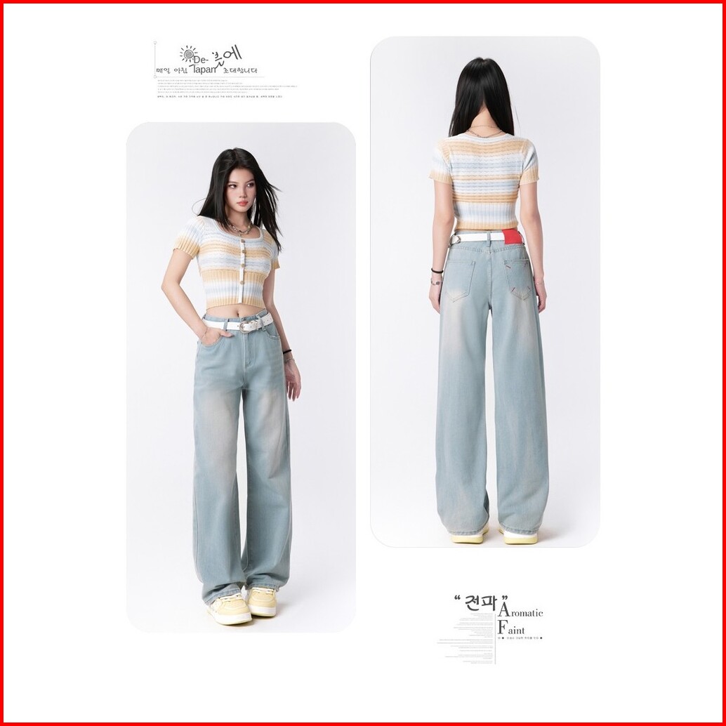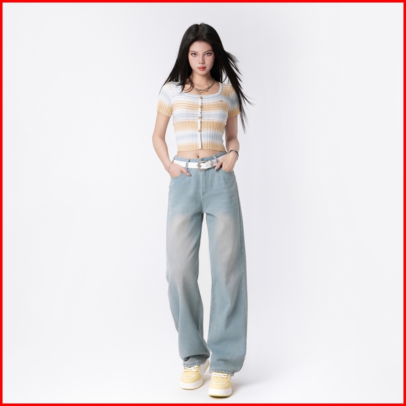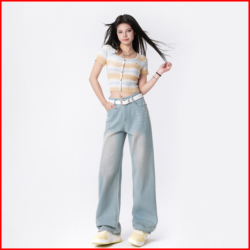 Uni And Glow Rhea Pants Celana Mom Jeans Dengan Karet Belakang High-waist Wanita Biru Cuci 2638