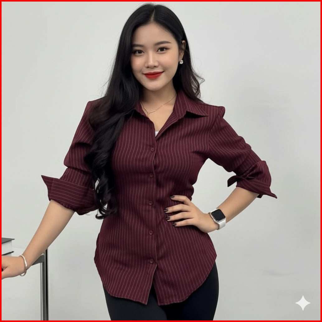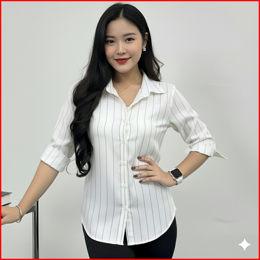Kemeja Wanita Luna Stripe Lengan Panjang Atasan Casual Formal Kekinian