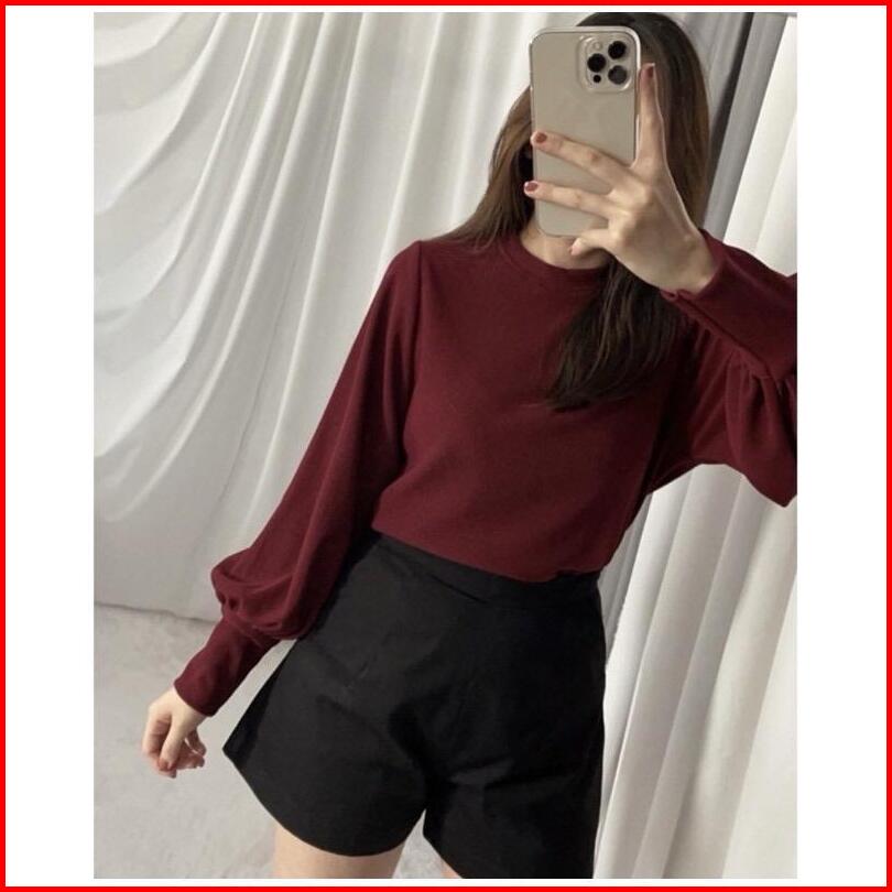 Puffy Shoulder Top Kaos Wanita Lengan Balon Kekinian Terbaru Korean Style