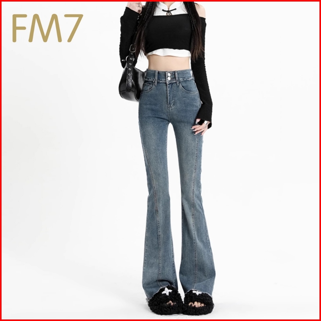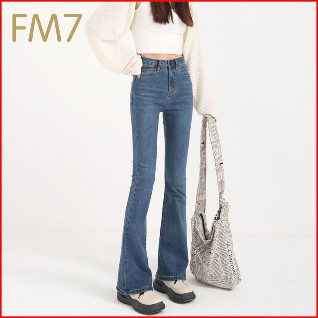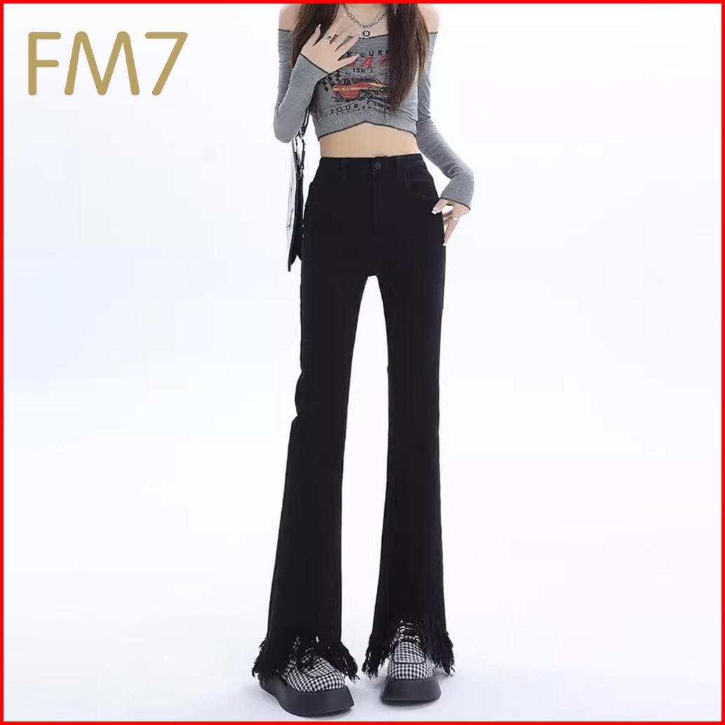 Fm7 L159 Korea Cutbray Jeans Highwaist Celana Jeans Wanita Kekinian Seksi Flare Jeans - Hitam