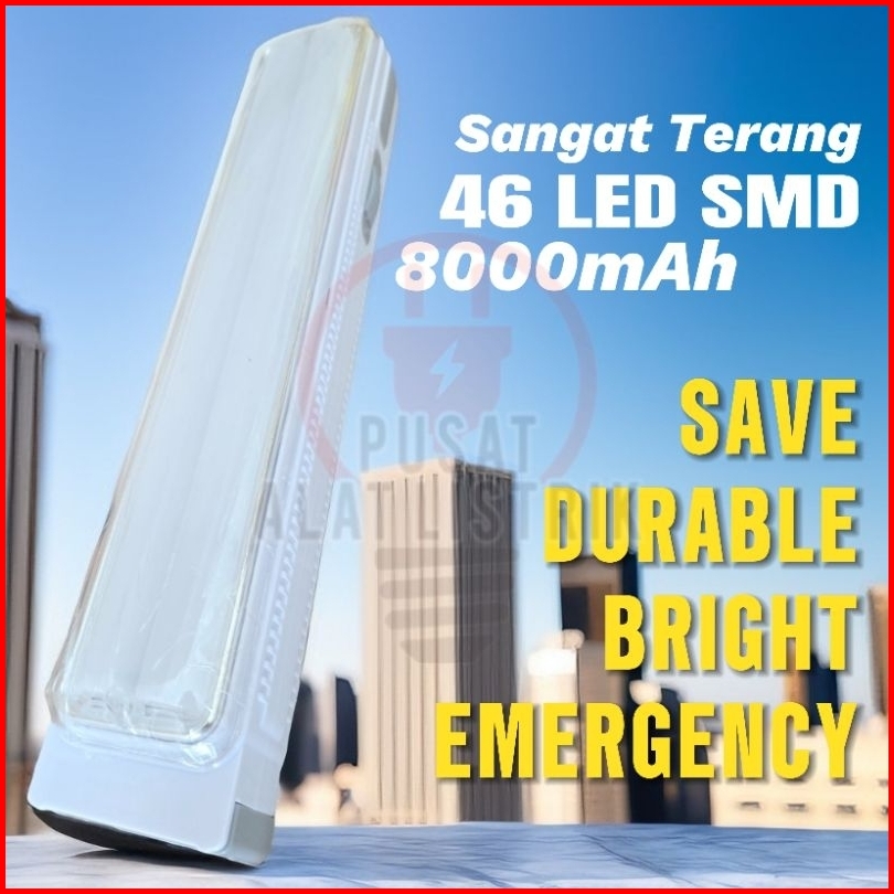 Lampu Emergency Sangat Terang 46 Led Smd 8000 Mah 2 Tube Cas Rechargeable Emergency Light Lampu Emergensi Lampu Darurat