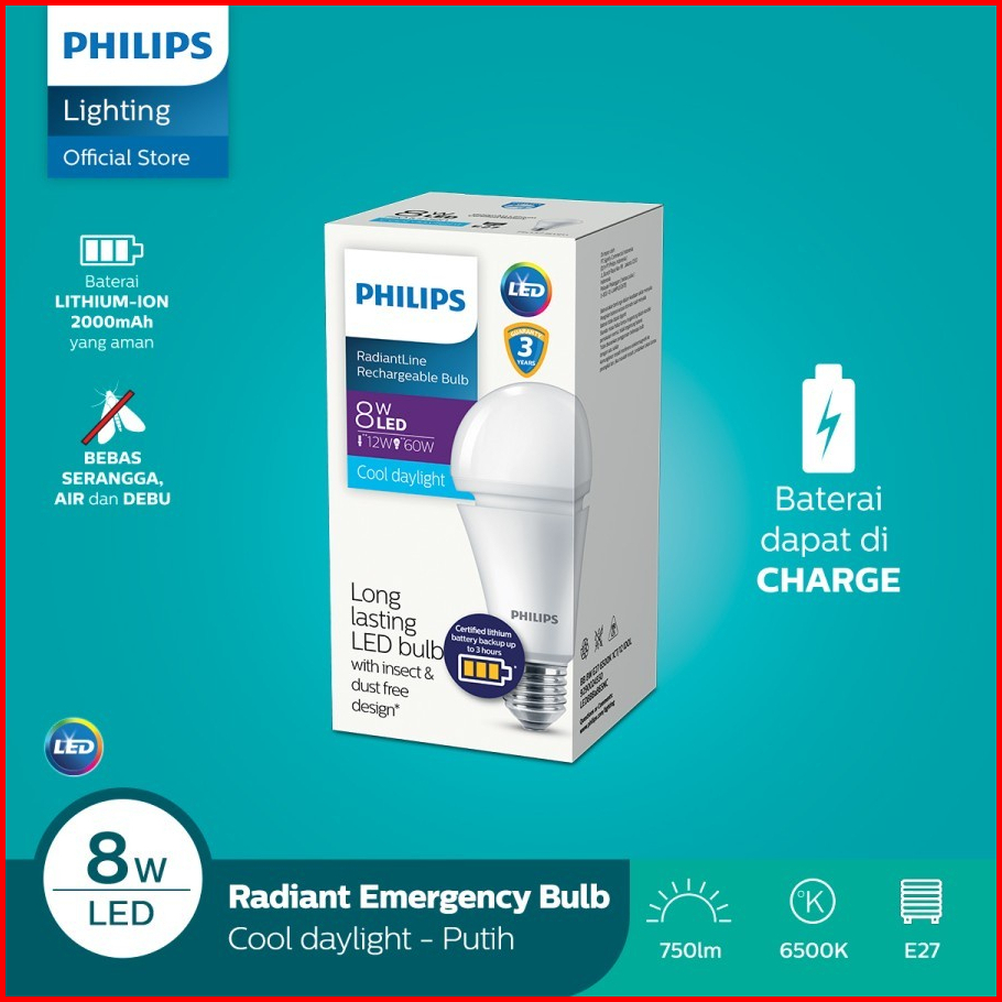 Philips Lampu Emergency Led Bulb Rechargeable 8w 11w 7.5w 7.5 Watt 9w Putih Philips Radiantline