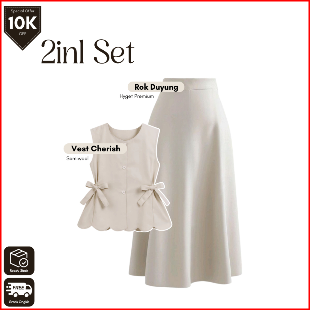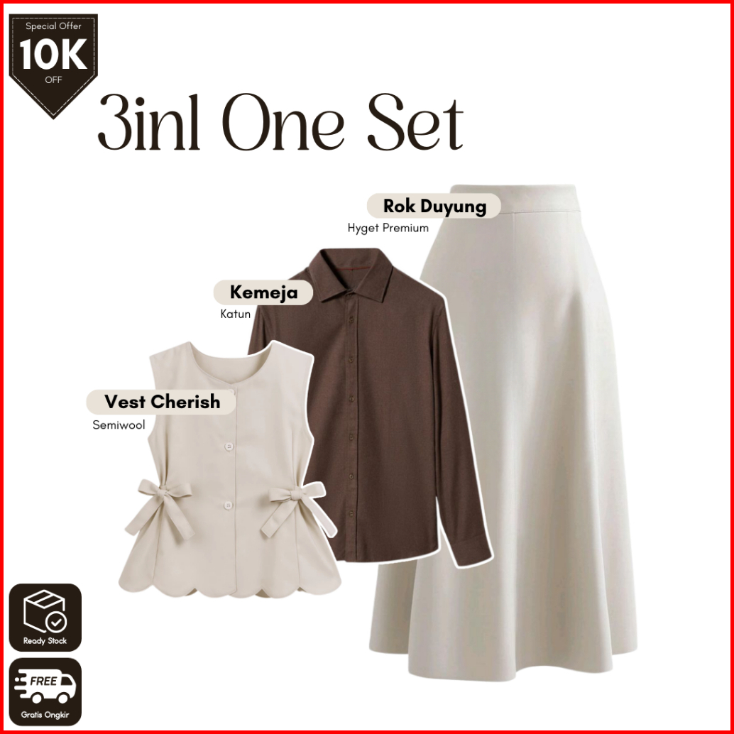 Grl 130 One Set Wanita 4in1 Vest Cherish Kemeja Rok Mayung Hijab Outfit Hangout Cantik