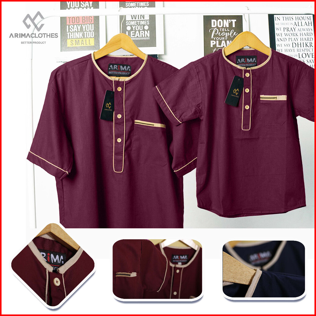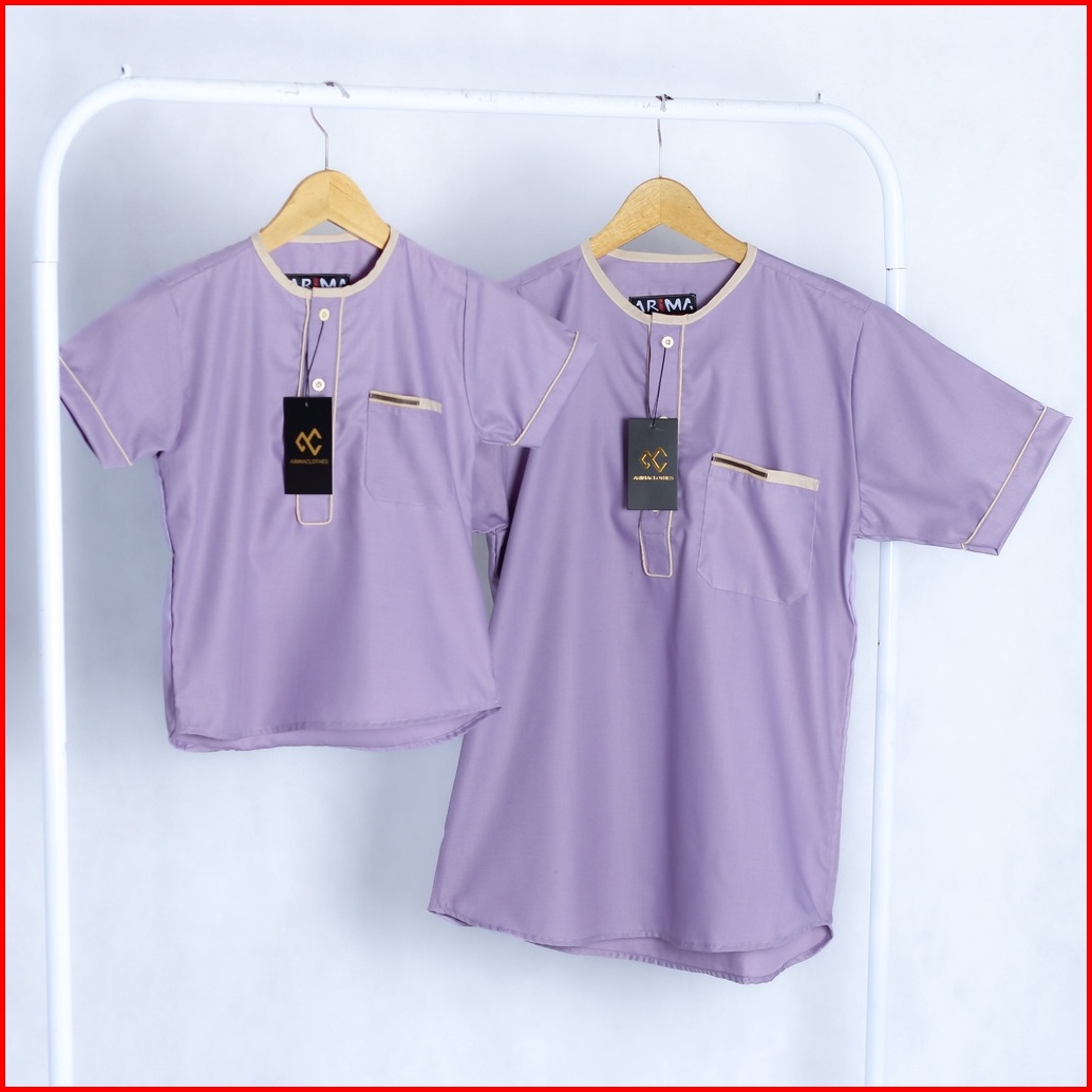 Koko Couple Haza Sage Green List Cream - Baju Couple Lengan Pendek Ayah Dan Anak Laki Laki