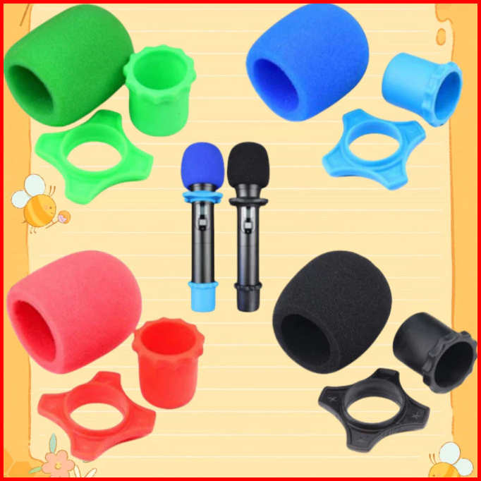 Luxsona 3pcs Sarung Mic Set Ring Cincin Karet Cincin Penutup Mikrofon Busa Tebal Penutup Spons Busa Mic Mikrofon Anti