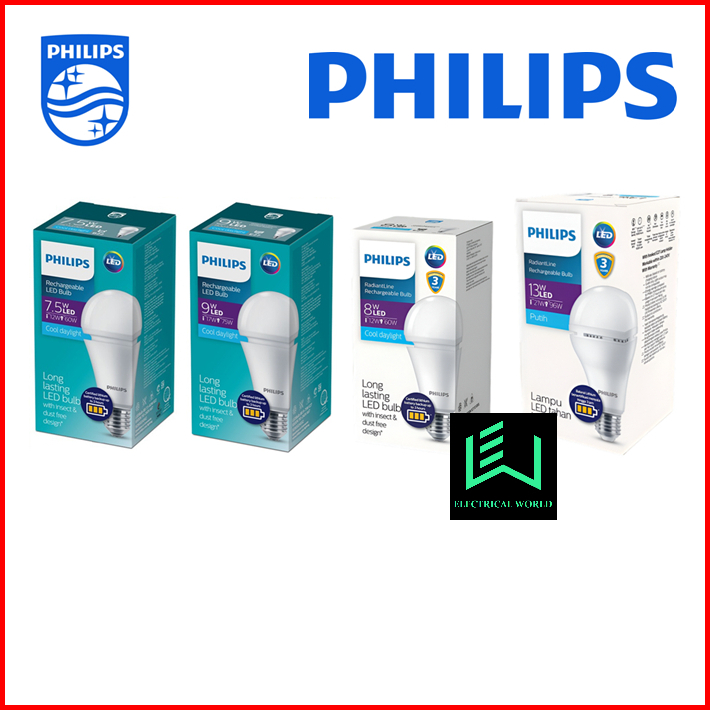 Lampu Emergency Led Bulb Rechargeable Philips Led 7.5w 9w Radiantline 8w 13w 7.5 9 8 13 W Watt Putih