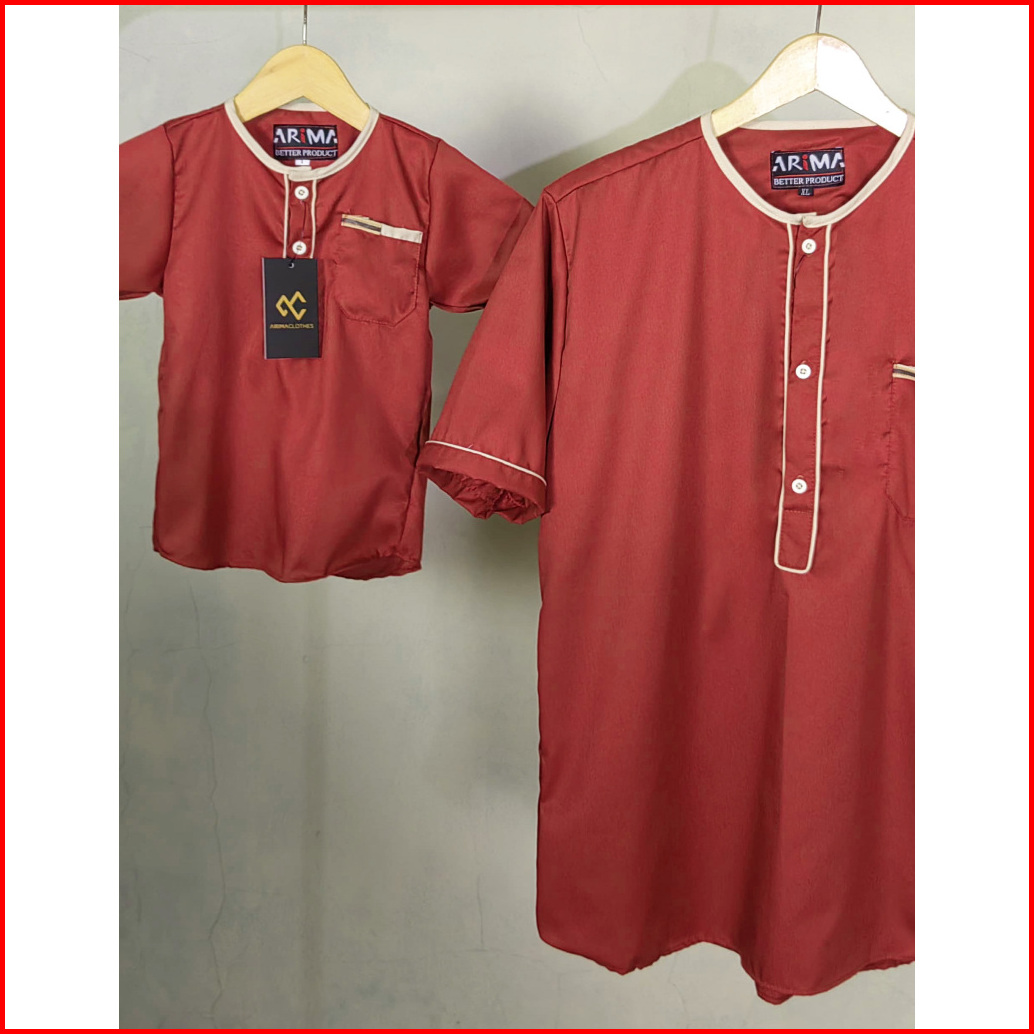 Siap Kirim Koko Haza List Cream Tanpa Kerah - Koko Couple Ayah Dan Anak - Baju Muslim Lebaran
