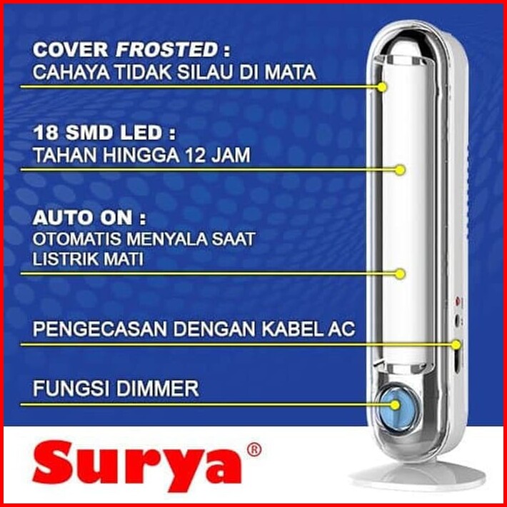 Surya Lampu Emergency Sql 18l Frosted Light Led 18 Smd With Dimmer Lampu Darurat 18 L Free Kabel