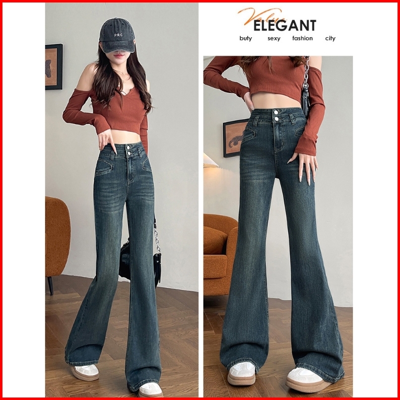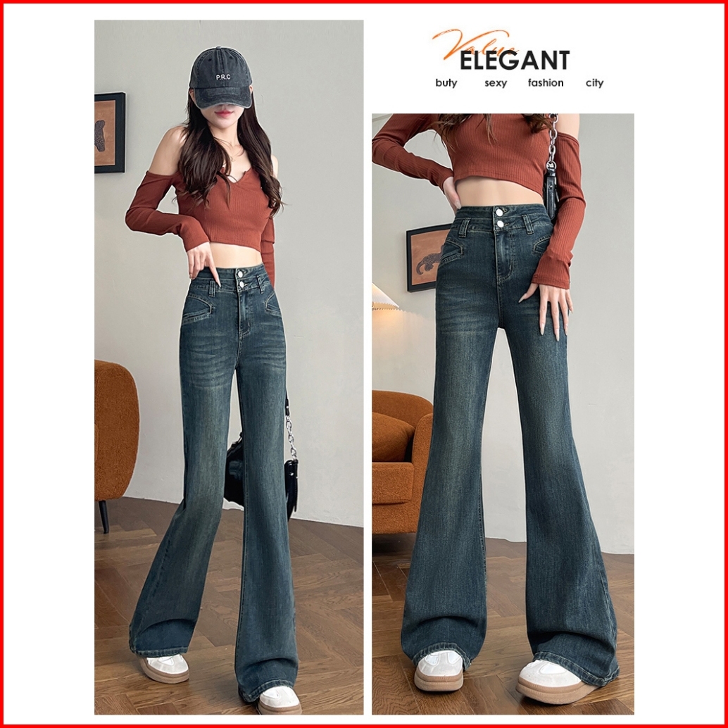 2toyoung High Waist Flared Jeans For Women Spring Autumn Summer 2025 New Slim Fit Wide Leg Horseshoe Flared Floor-length