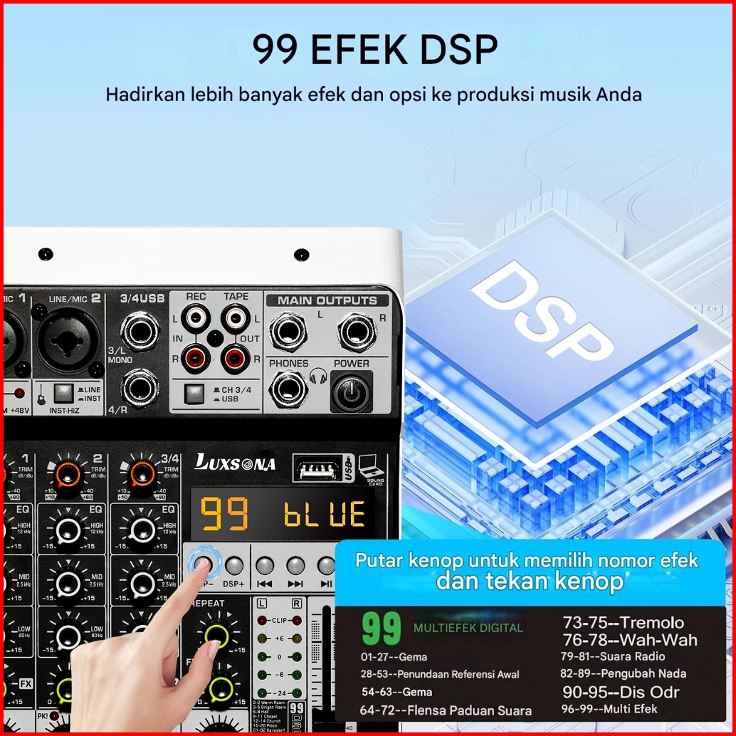 Luxsona 4 Chanel Mixer Audio Profesional Original Premium Mixing Dengan Usb Bluetooth Stereo Input Digital 99 Dsp Effect