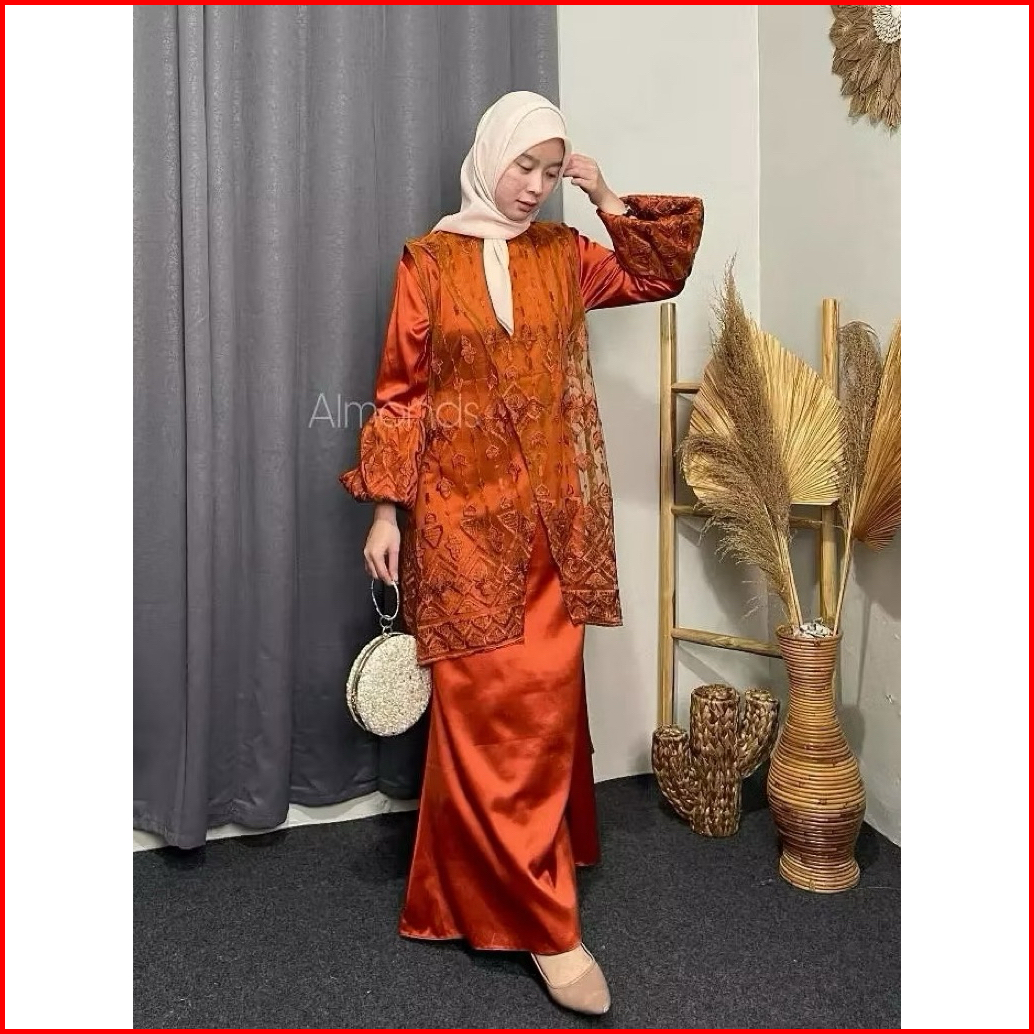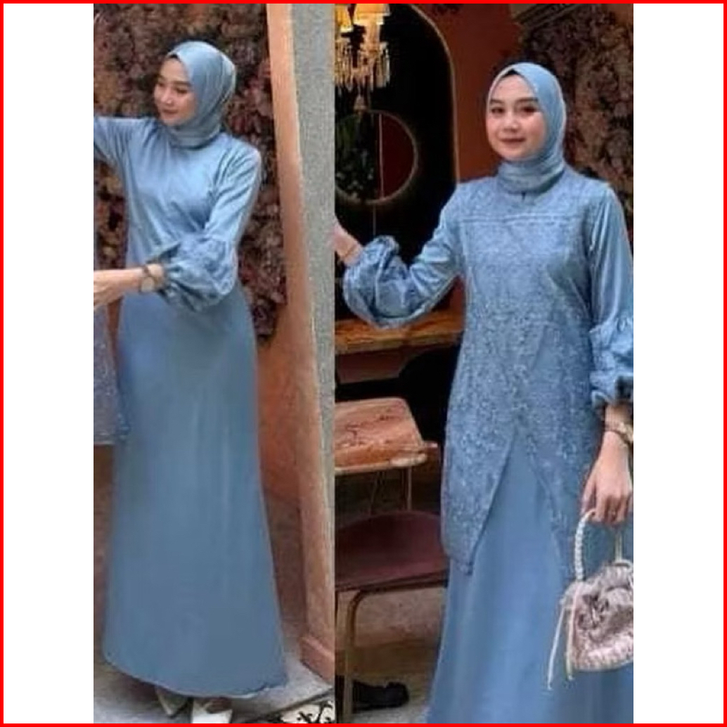 Luna Dress Vest Outer Brukat Silk Premium Warna Burgundy Gamis Brokat Pesta Kondangan Mewah Elegan