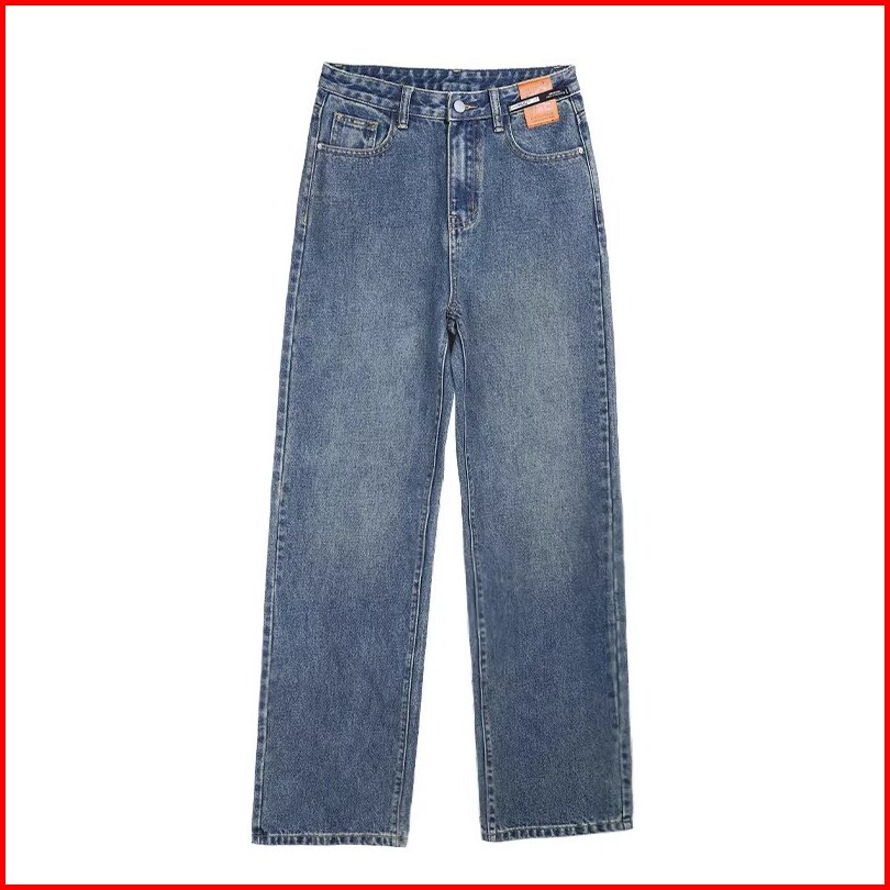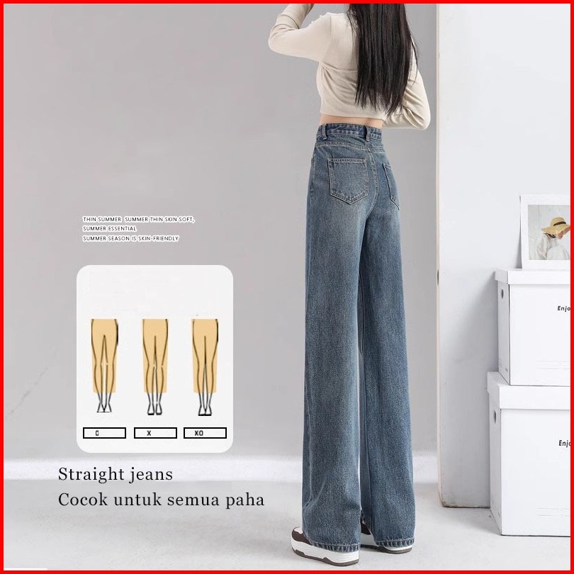 Keygirl Celana Denim Pinggang Tinggi Wanita Kasual Ukuran Besar Celana Lurus Berbagai Warna Opsional