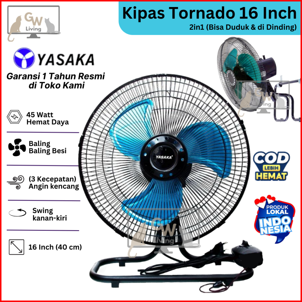 Kipas Angin Duduk Dinding Besi Tornado 16 Inch 2in1 Super Kencang Murah Hemat Daya