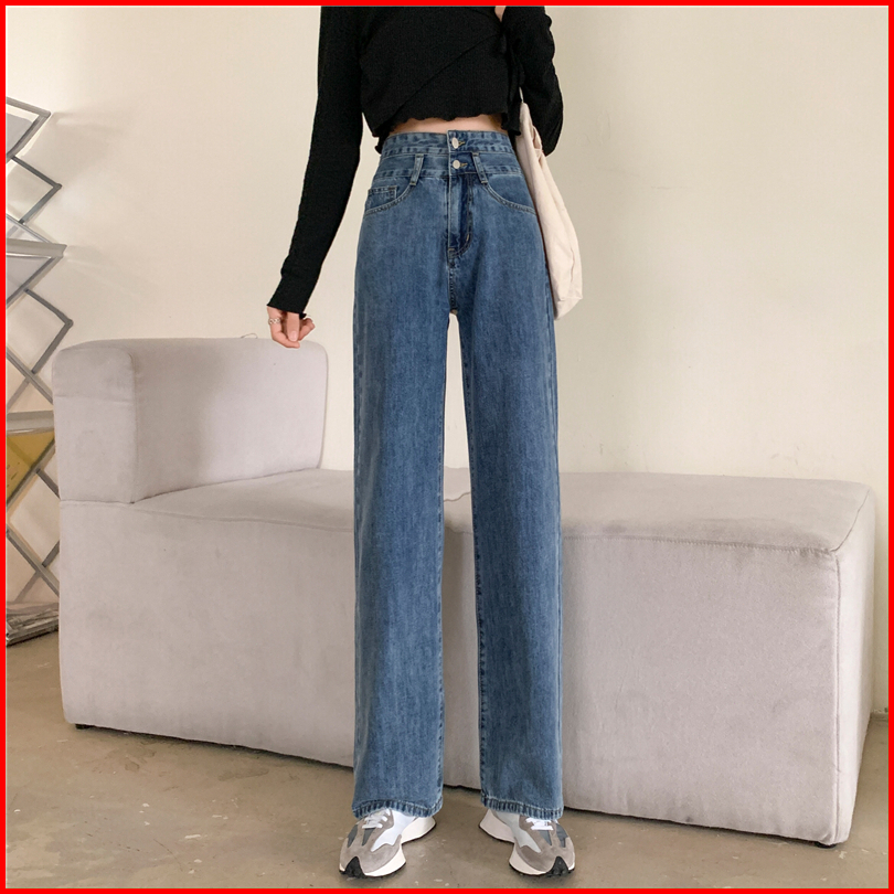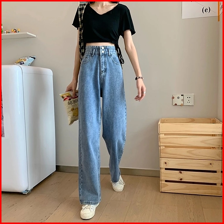 Yikoo - Korea Highwaist Denim Celana Jeans Kancing Dua Wanita Pants