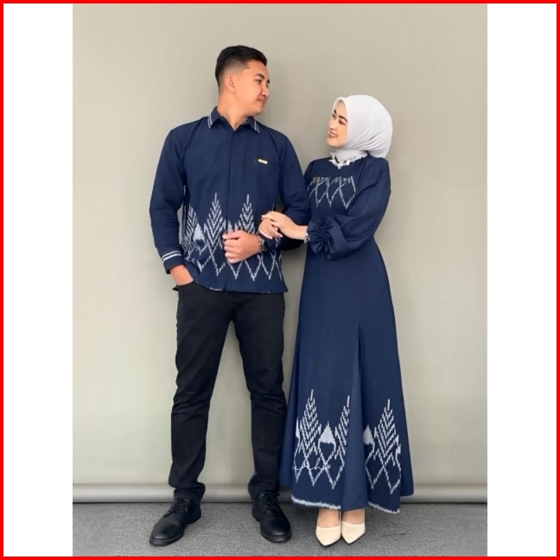 Adiba - Baju Tenun Couple Dress Kinanti Navy Couple Kondangan Baju Seragam Sarimbit Batik Keluarga