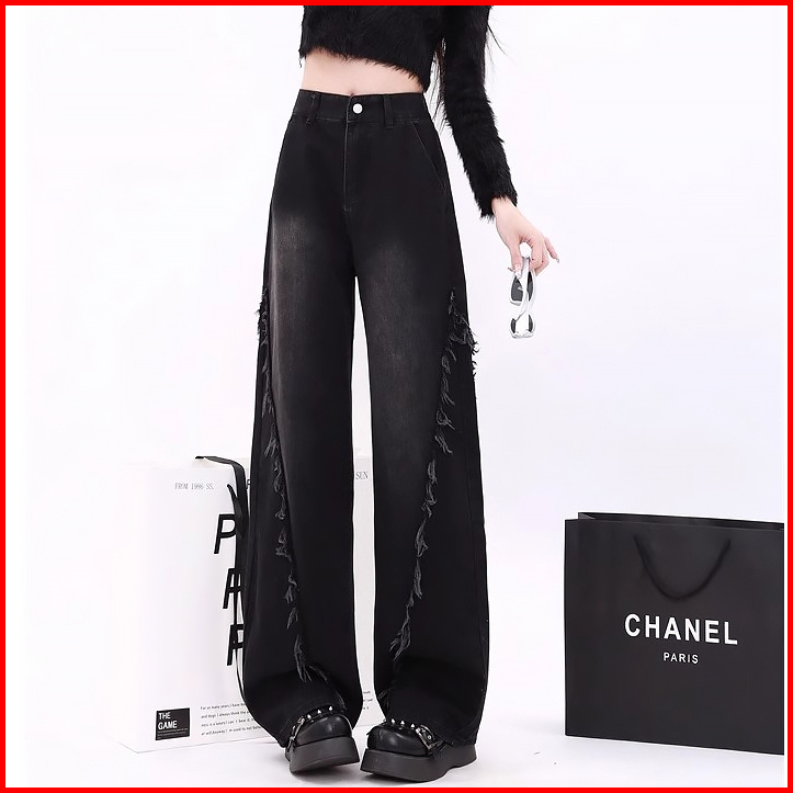 Keygirl Highwaist Baggy Loose Jeans Wanita Korean Style Gombrong Hitam Ovesize Straight Wide Leg Terbaru Causual Hiphop