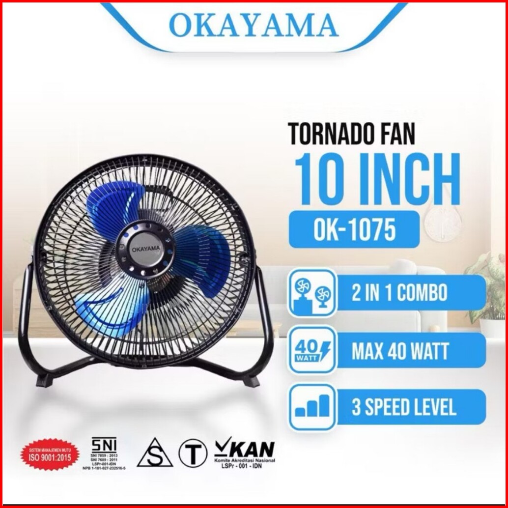 Okayama 12 Inch Kipas Angin Tornado Meja Lantai Ok-1275 Ok-1075