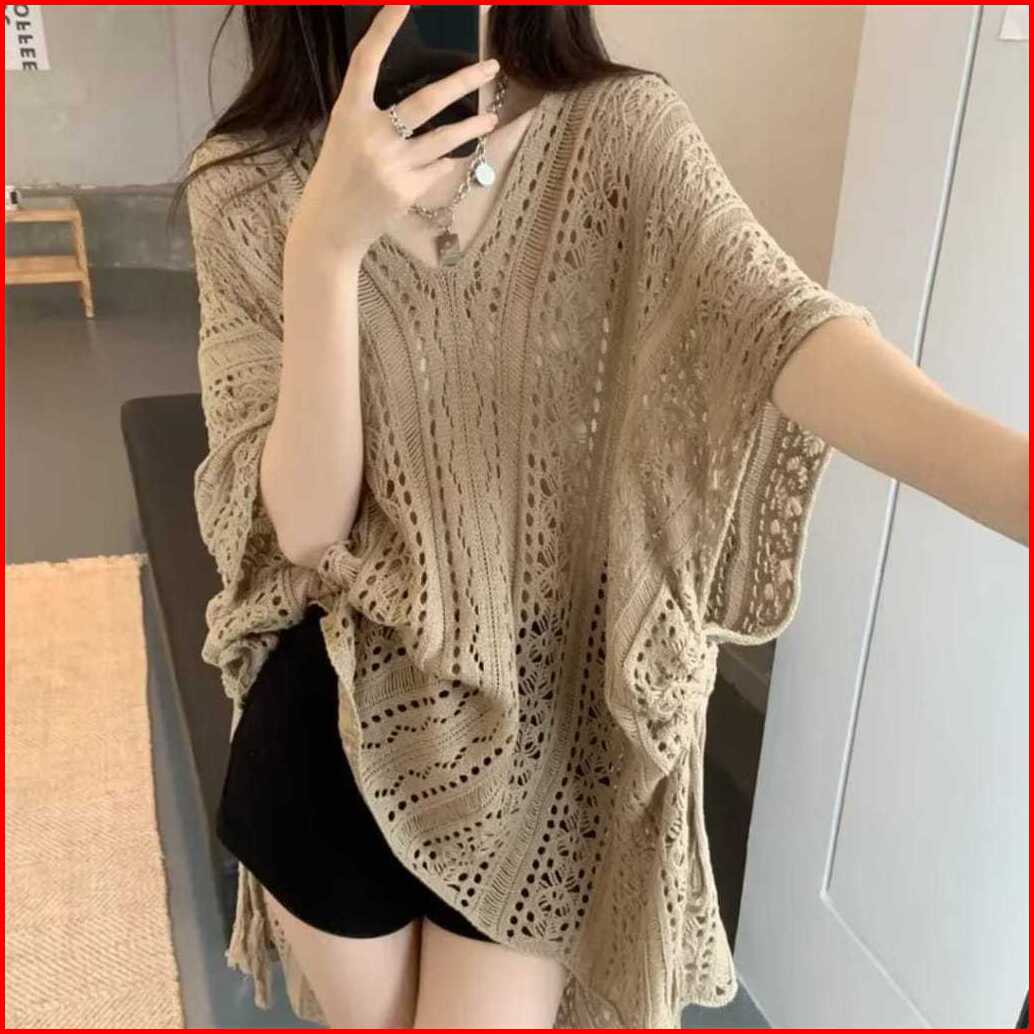 Emiola Hollow Blouse Rajut Adem Oversize Wanita