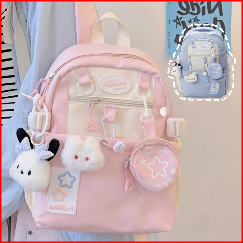 Tas Sekolah Ins Wanita Lucu Ransel Serut Siswa Perempuan Volume Tinggi Rasa Desain Serbaguna Ransel Perjalanan Tas Tahan