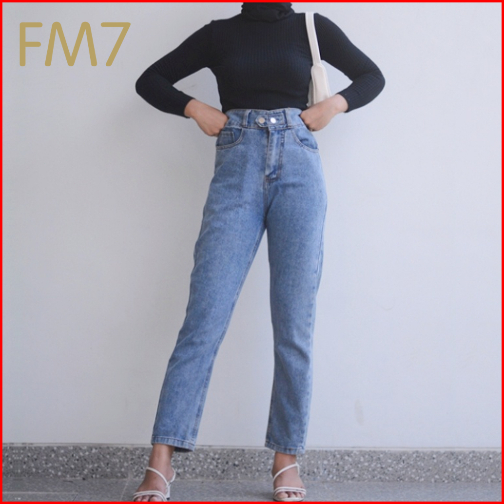 Fm7 L28 Korean Street Style Celana Panjang Highwaist Celana Jeans Wanita Straight - Biru