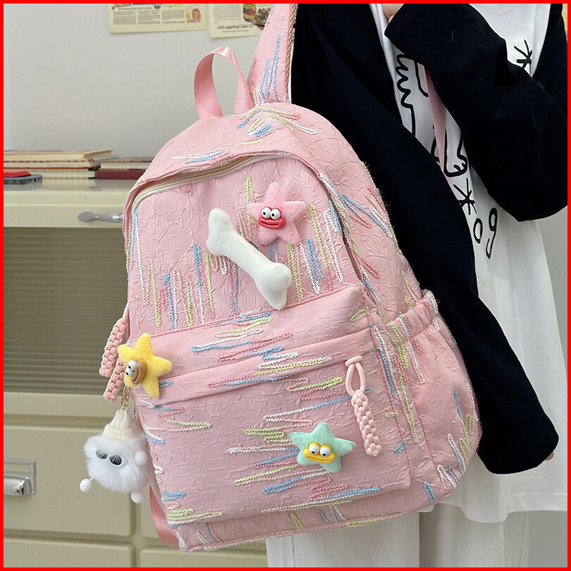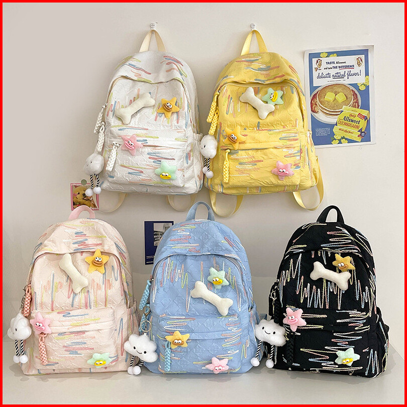 5pcs Tas Sekolah Wanita Pink Lucu Tas Sekolah Sma Korean Style Wanita Tas Sekolah Kecil Lucu Backpack Ransel Perguruan K