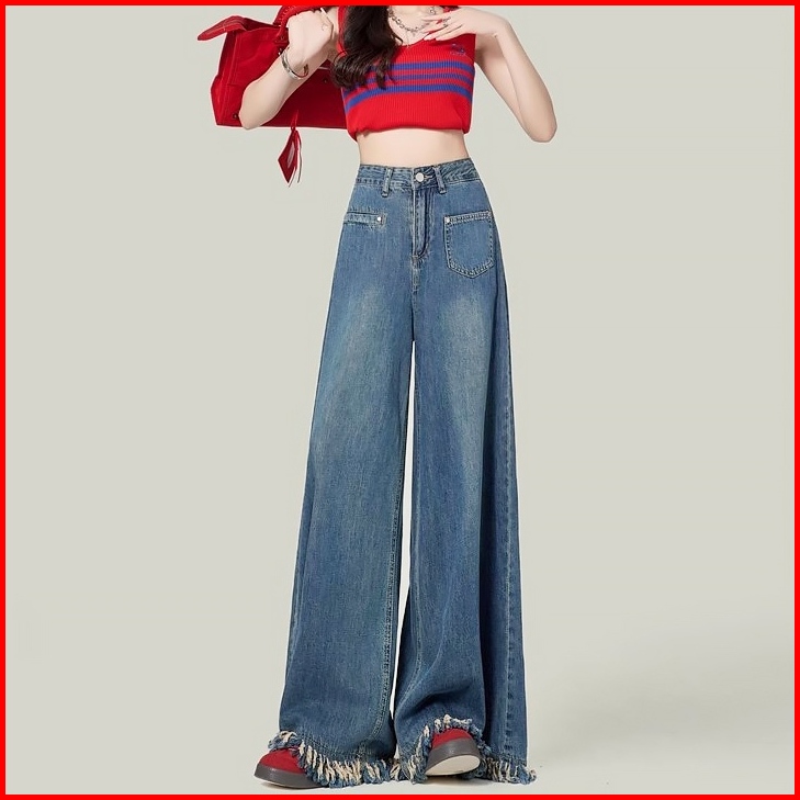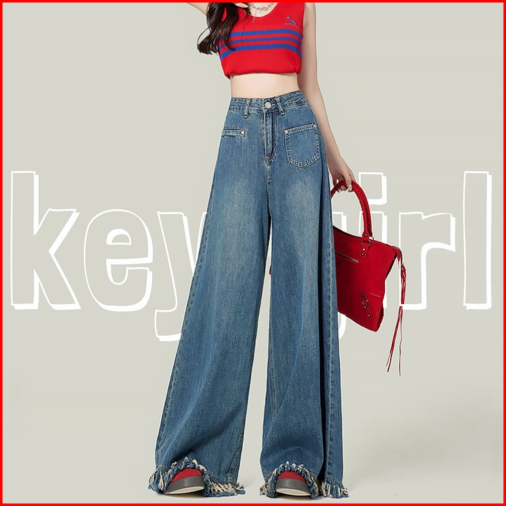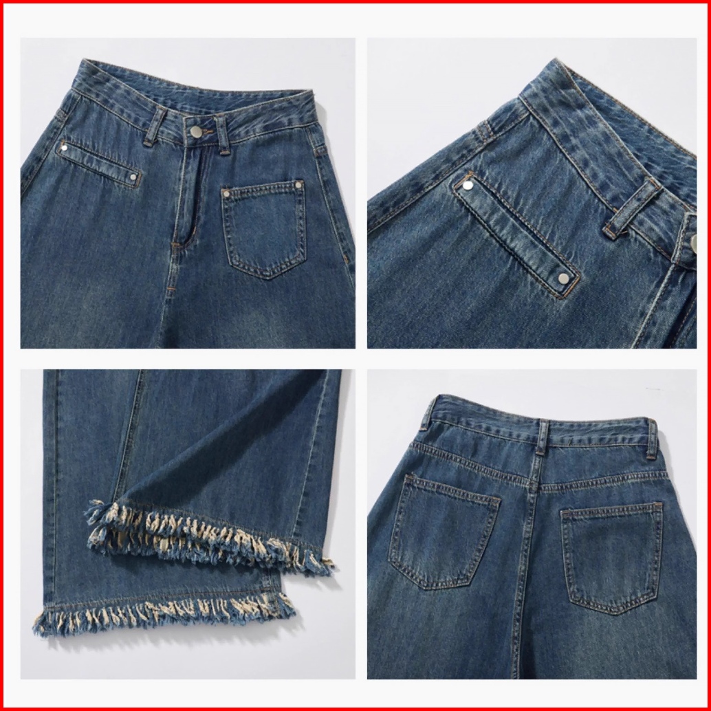 Keygirl New Jeans Baggy Retro Biru Panjang Wanita Korean Style Celana Highwaist Kulot Wide Leg Jeans Wanita