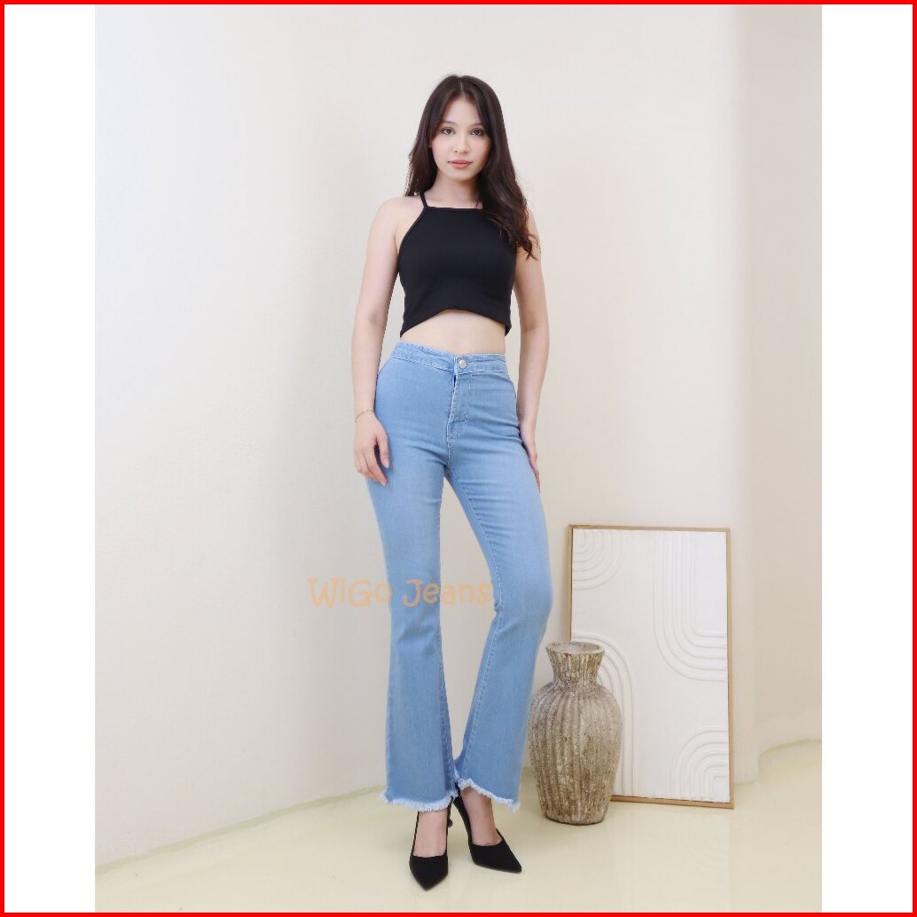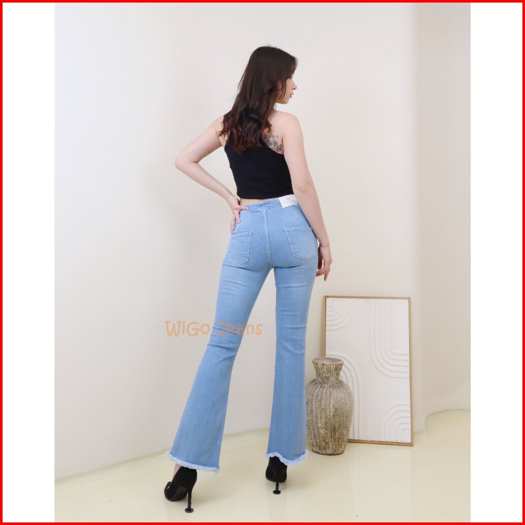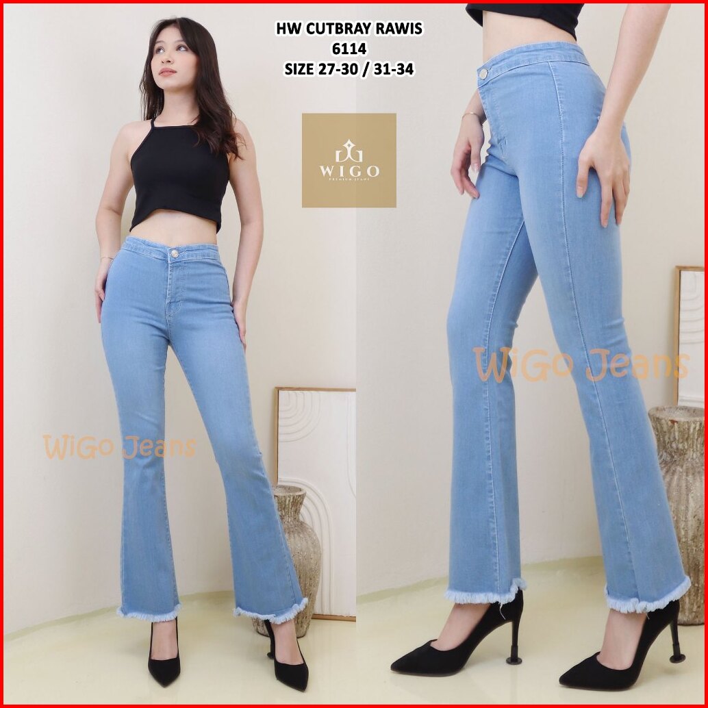 Celana Highwaist Cutbray Rawis Jeans Wanita Premium Stretch Biru Muda Size 27 - 34