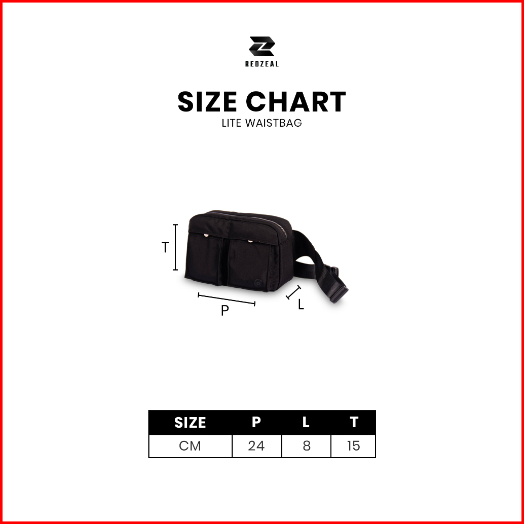 Redzeal Lite Sling Bag Black Water Resistant Waist Pouch Tas Selempang Kasual Simple