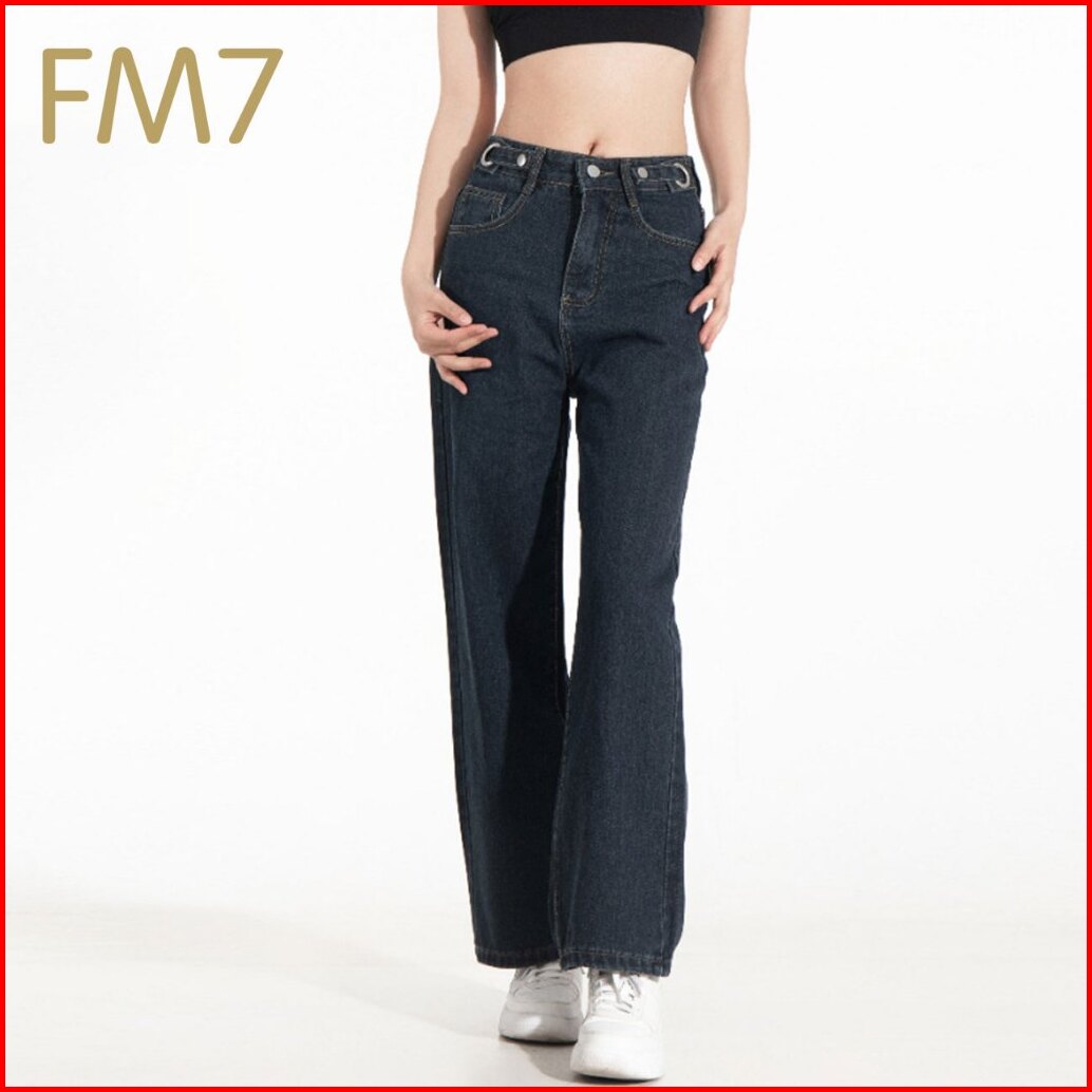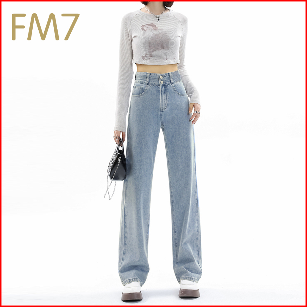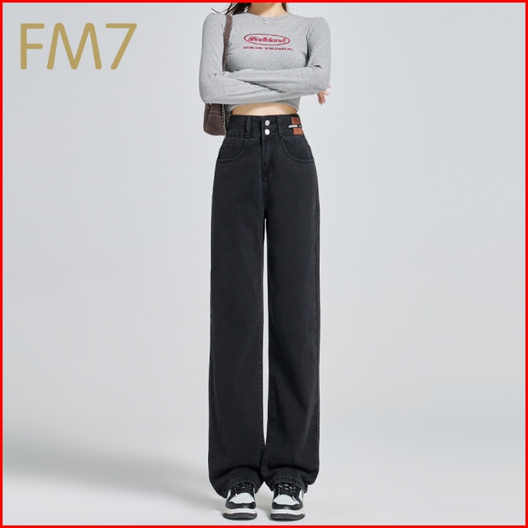 Fm7 L138 Korean Style High Waist Bagy Celana Jeans Straight Kasual Wanita - Hitam