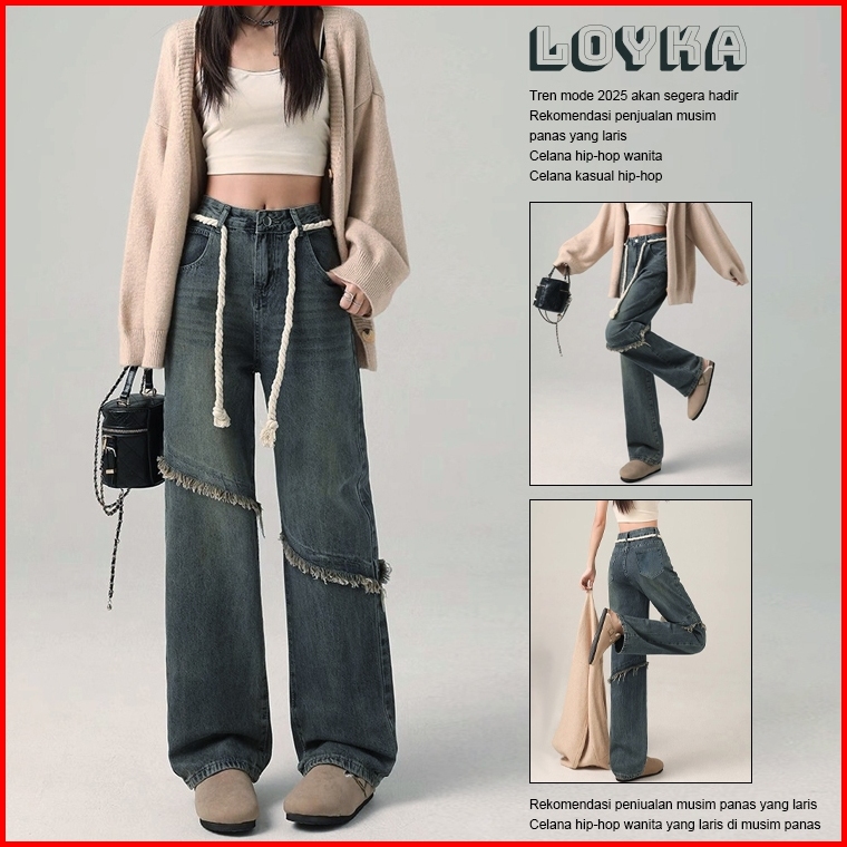 Loyka Celana Highwaist Kulot Jeans Loose Wanita Baggy Retro Jeans Cewek Korean Style