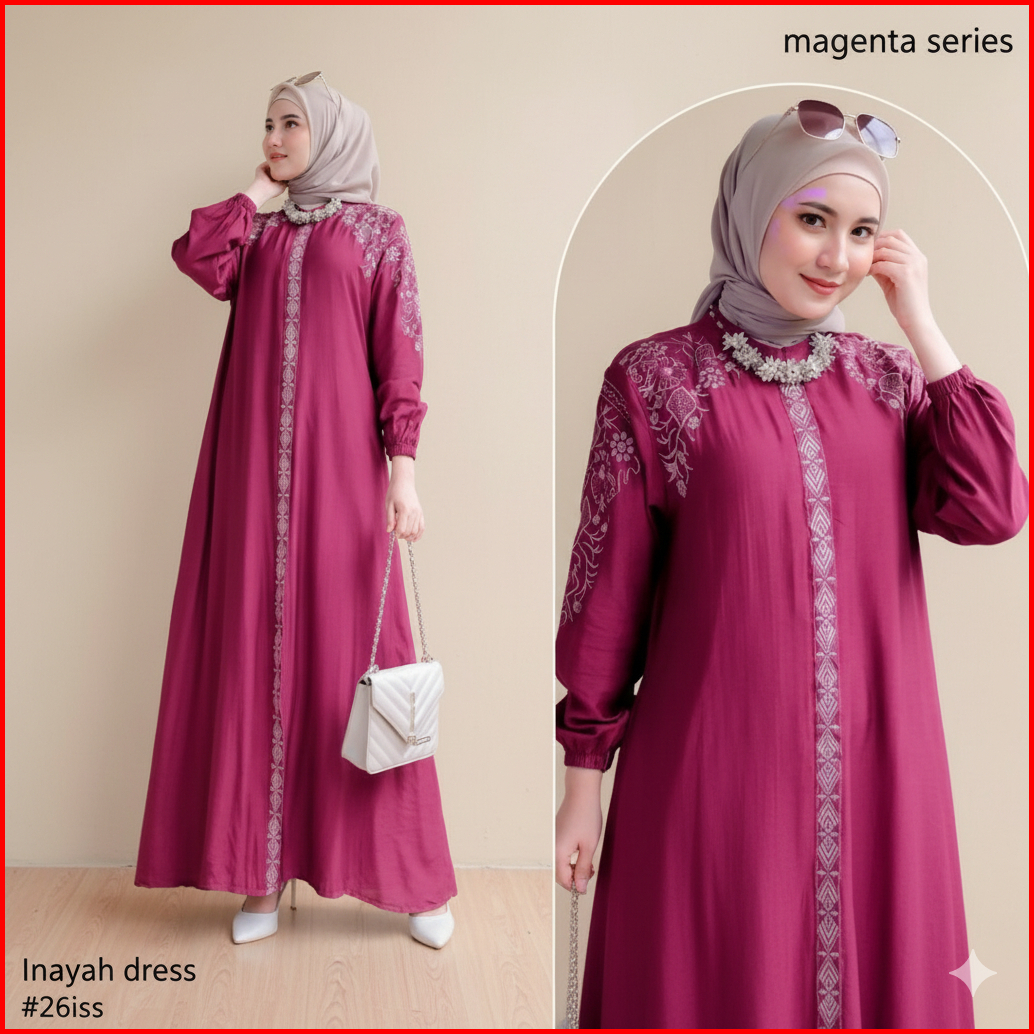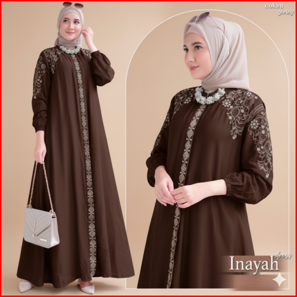 Gamis Inayah Dres Bahan Bordir Baju Kondangan Seragaman Lebaran 2026 Termurah Kualitas Terbaik