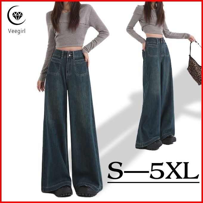 Veegirl Celana Jeans Inport Cutbray Panjang High Waist Denim Jeans Loose Jumbo Celana Korean Style Celana Jeans Wanita K