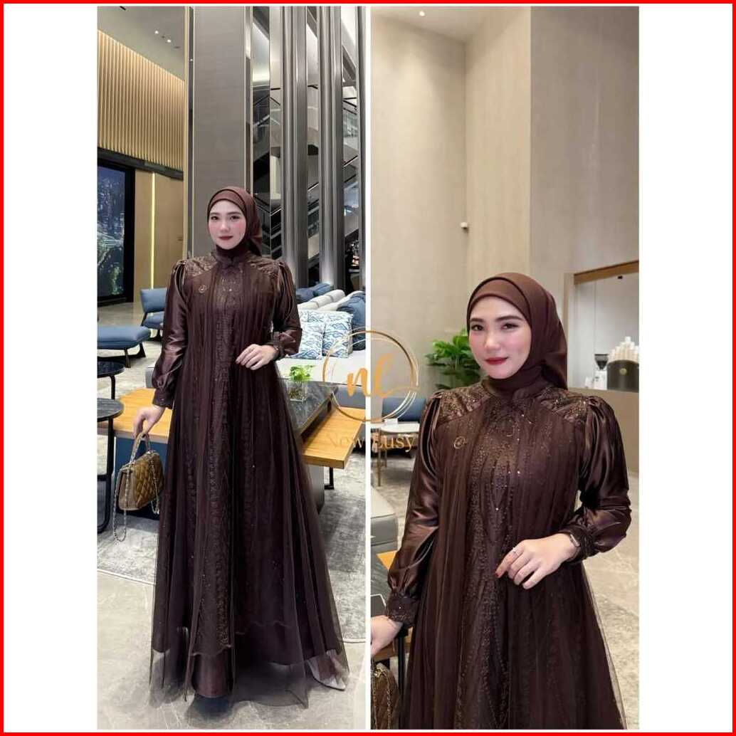 Gamis Muslimah Terlaris Model Terbaru 2026 Leya Dress Velvet Mix Brukat Plus Tile