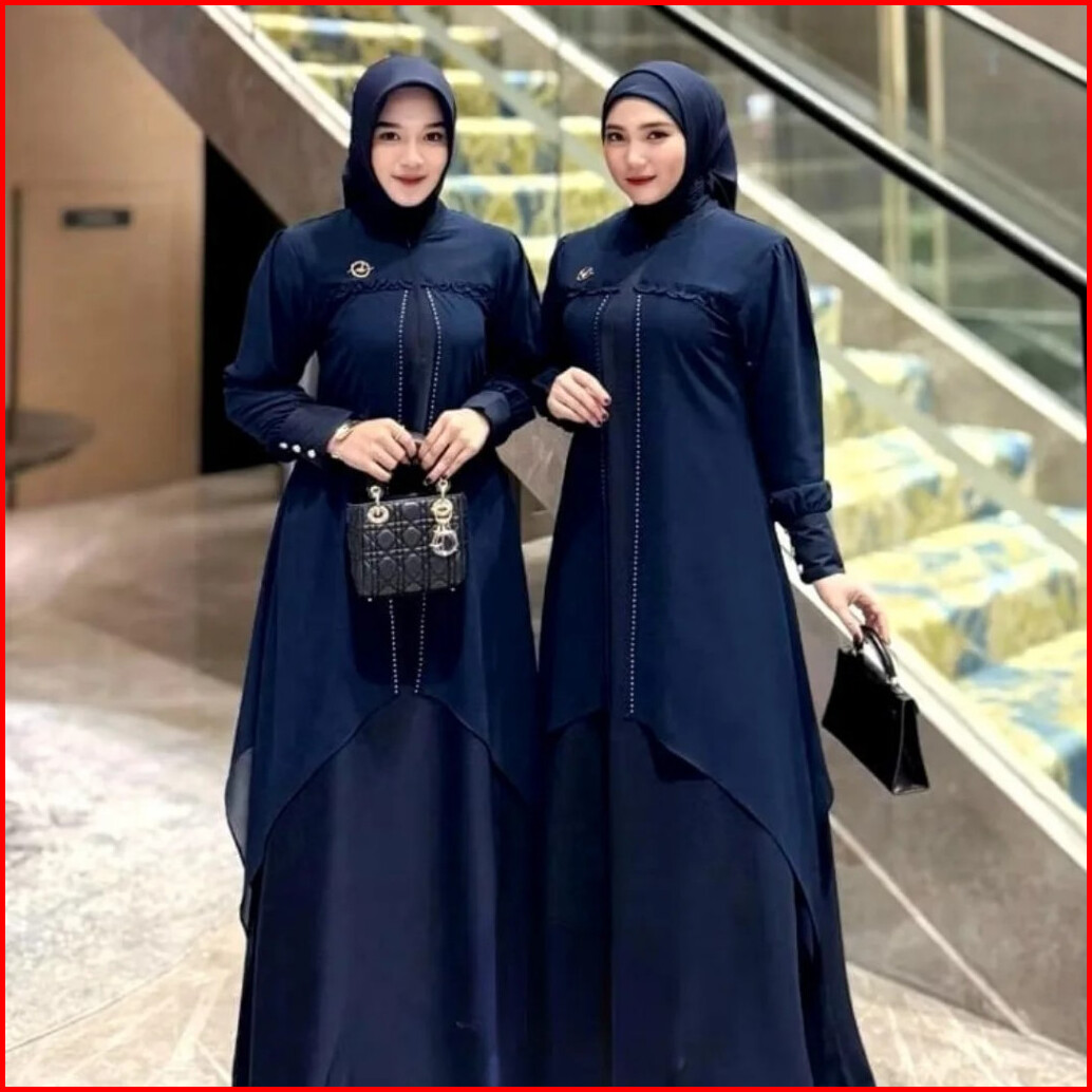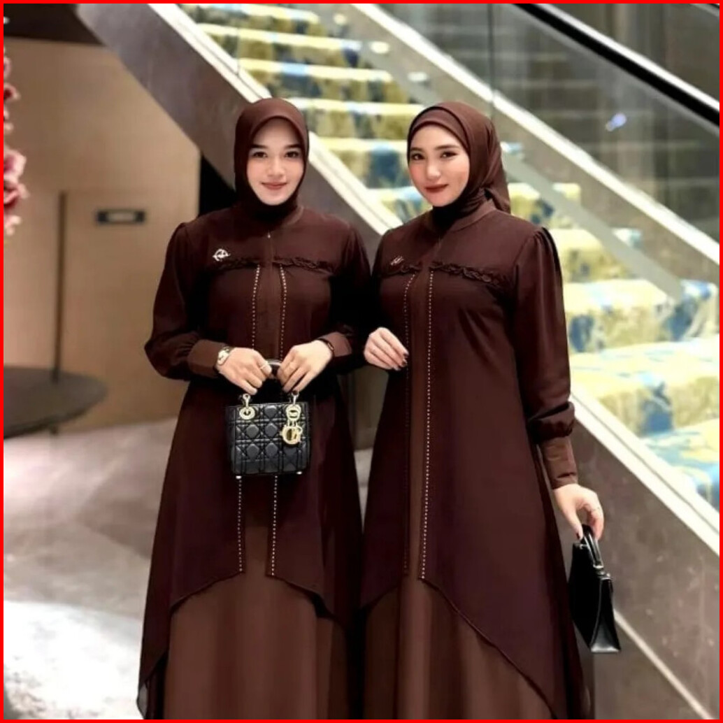 Nadinee Dress Mahogany Gamis Pesta Layer Depan Ceruty Babydoll Mix Swaroski Gamis Lebaran 2026
