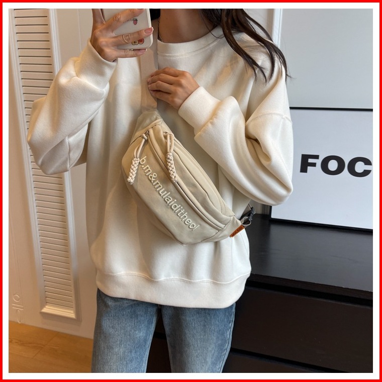 Ready Fiexible -tas Pinggang Fashion Wanita Korea Tas Bahu Wanita Shoulder Bag Tas Canvas Selempang