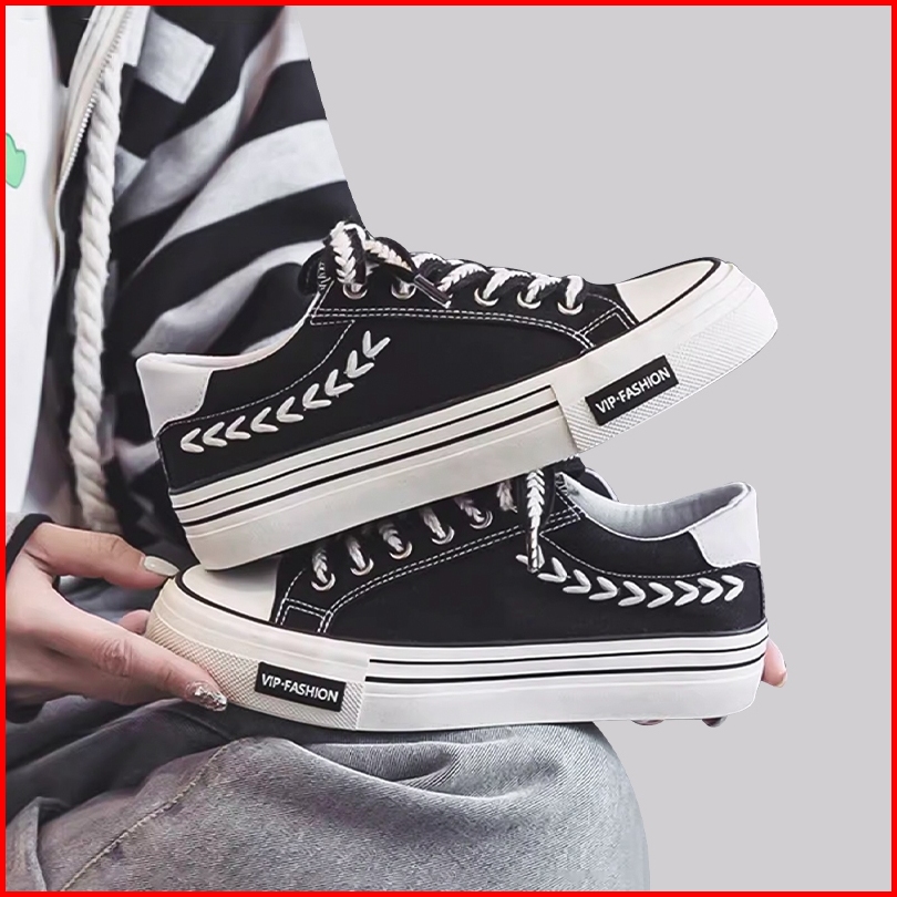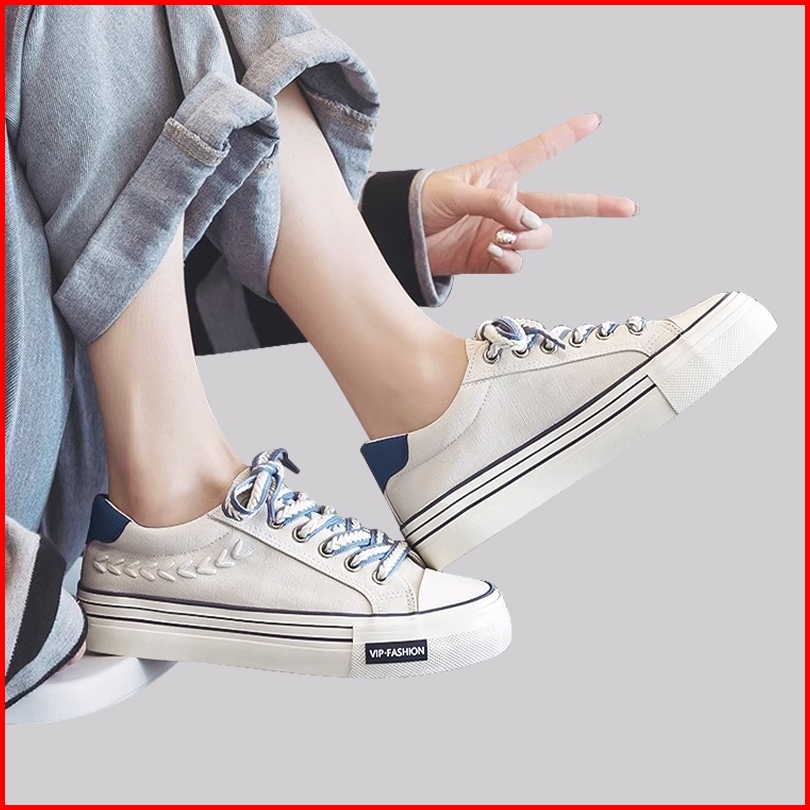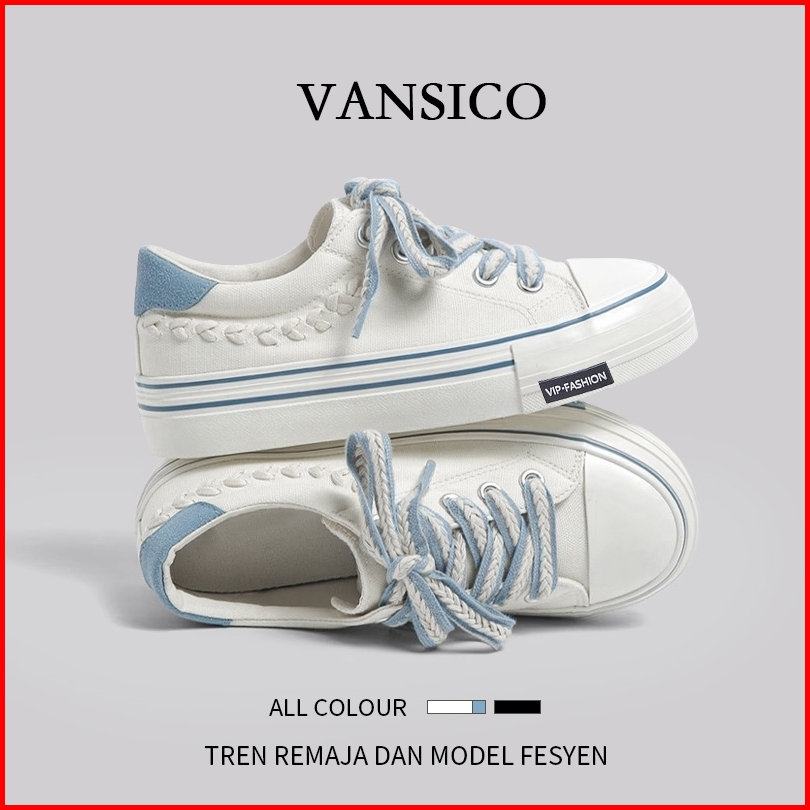 Vansico Sepatu Sneakers Canvas Kanvas Wanita Original 100 Tali Kekinian Flat Shoes Putih Hitam Santai Casual Olahraga Ce