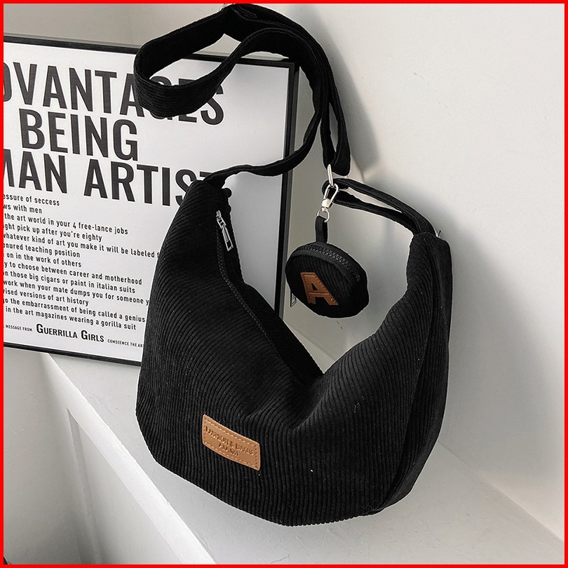 Milo Sling Bag Corduroy Wanita Tas Resleting Style Casual Aesthetic Tas Selempang Wanita Tas Bahu Wanita Slingbag Should
