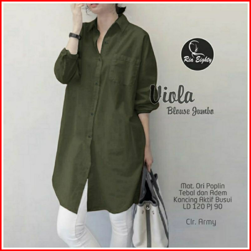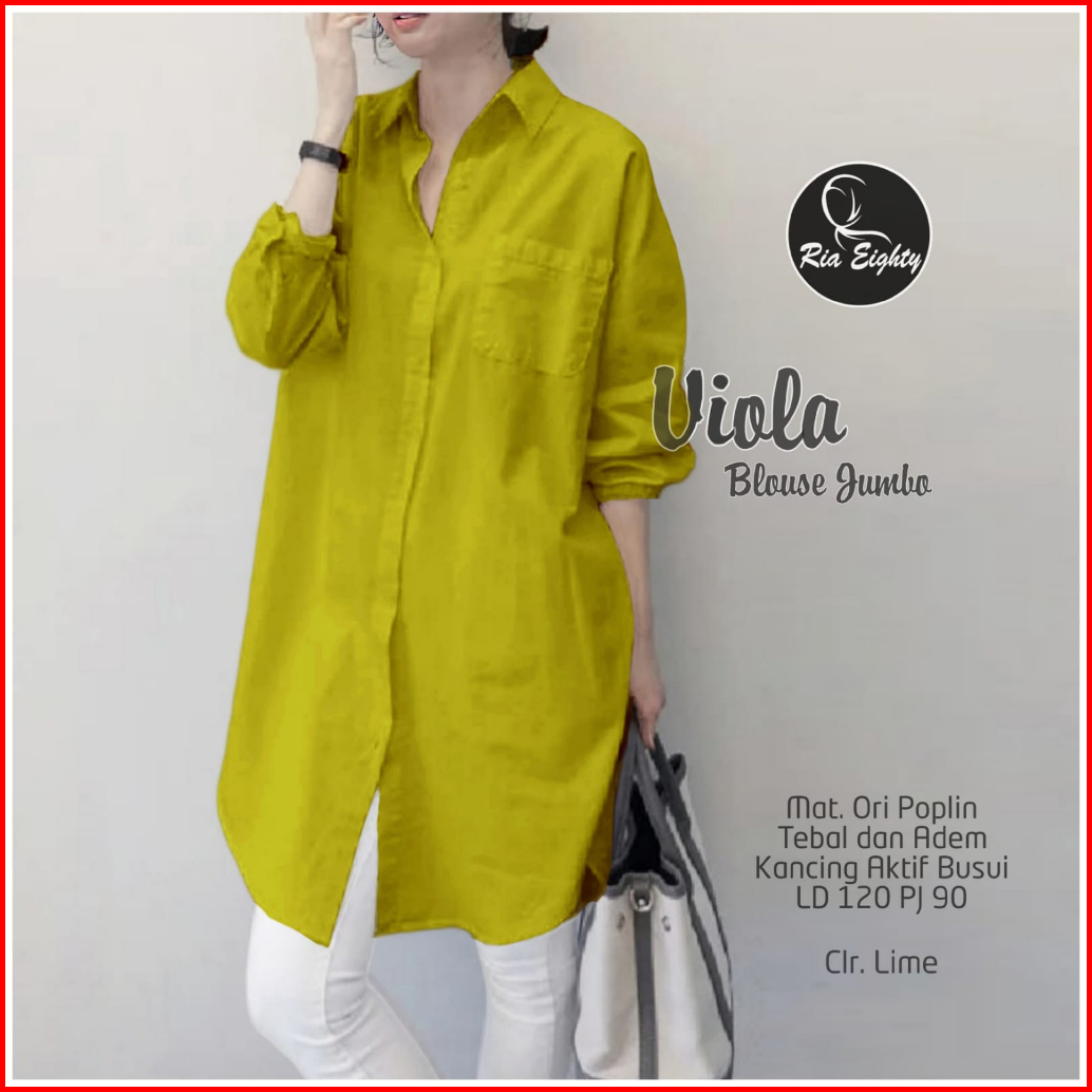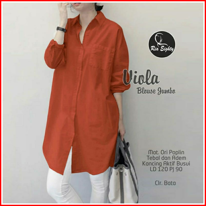 Busana Fashion Wanita Hq Atasan Kemeja Basic Viola Blouse Oversize Jumbo Katun Poplin Premium Ld 120 Kasual Kekinian Nya