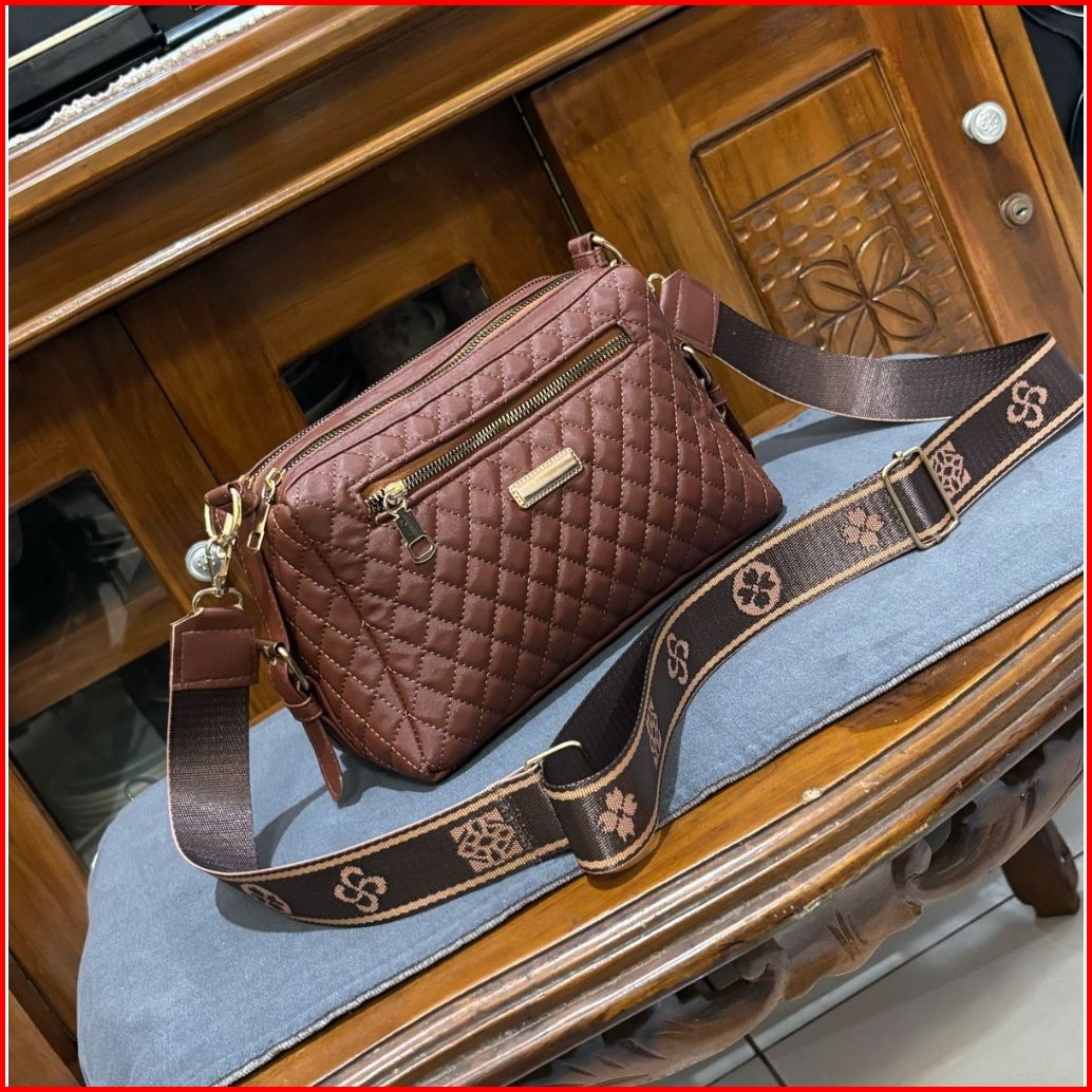 Tas Selempang Wanita Bordir Catalina 3 Ruang Tali Strap New Model Free Caper Bag