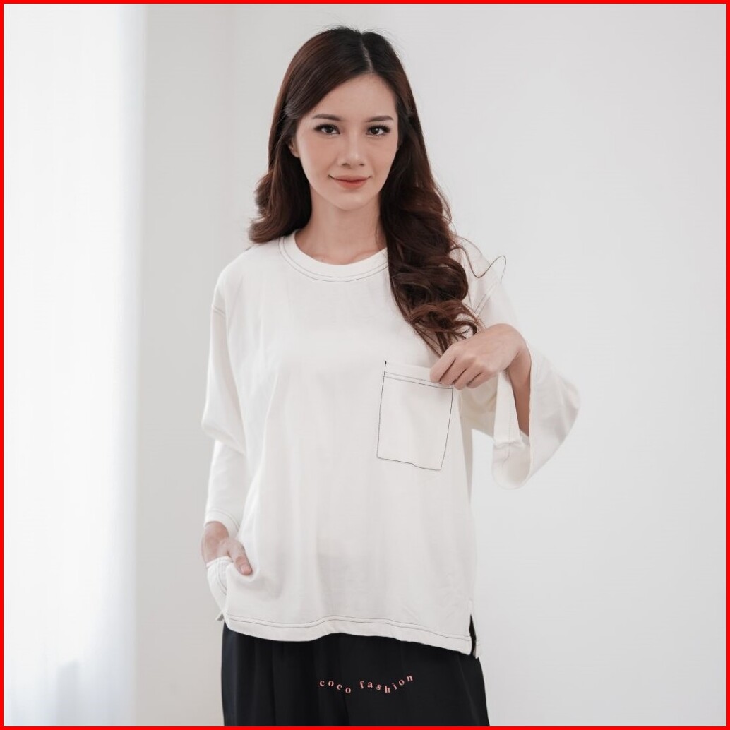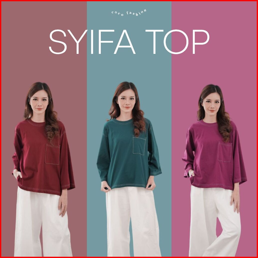 Atasan Wanita Kaos Lengan Panjang Syifa Hijab Oversize Kantong Premium Korean Style Casual Combed