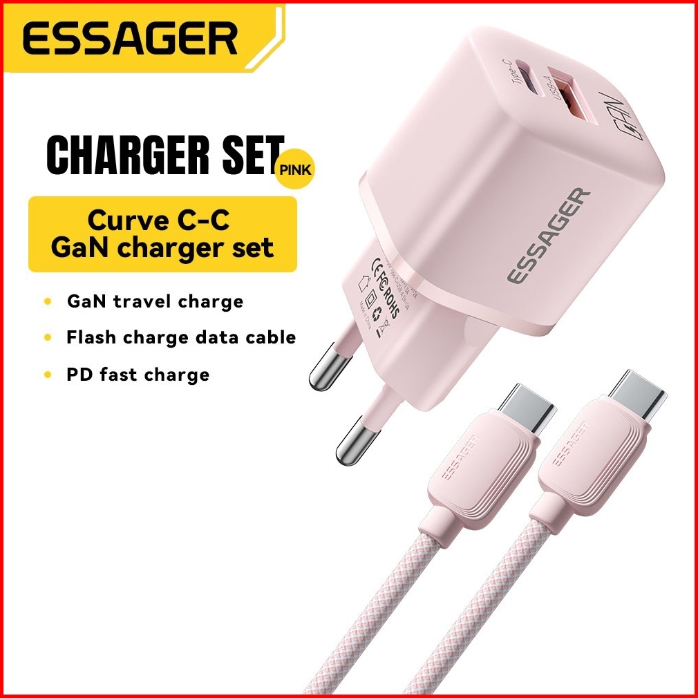 Essager Charger Gan Set 20w With Cable Kabel Usb C To Type C 7a Pd Fast Charging Samsung Qc 3.0