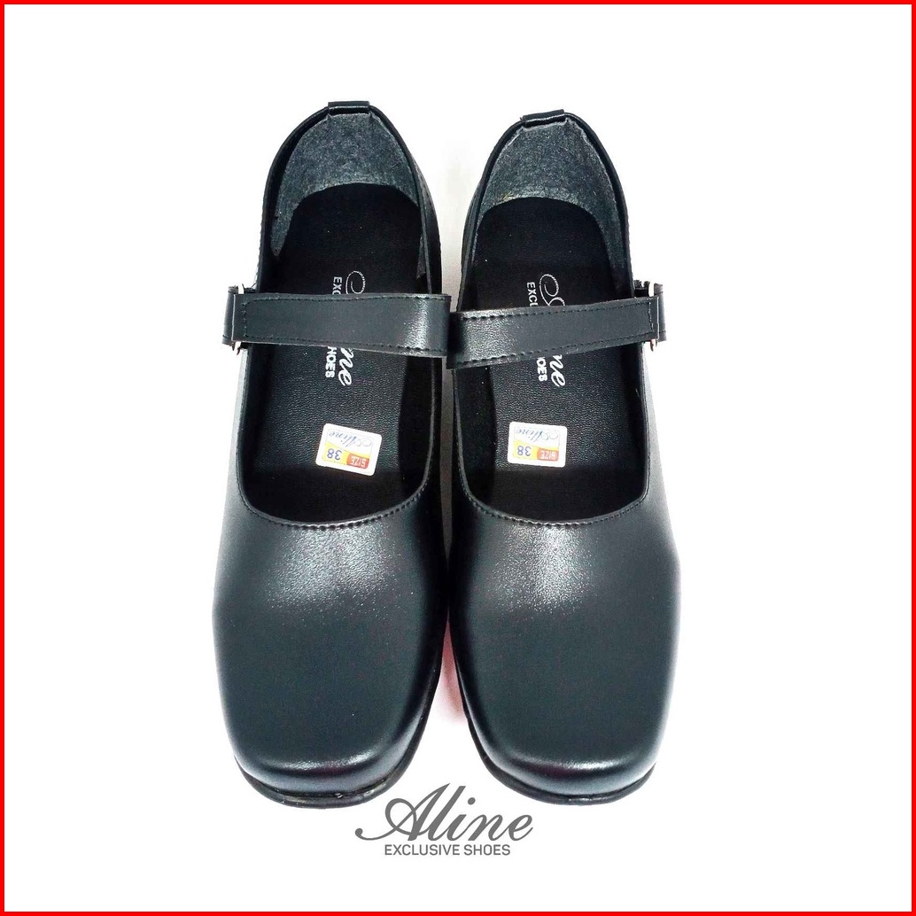 Sepatu Wanita Pantofel Paskibra Sekolah Size 36-41 Aline Hitam Hak 2 Cm Cewek Kantor Paskibraka Paskib A02